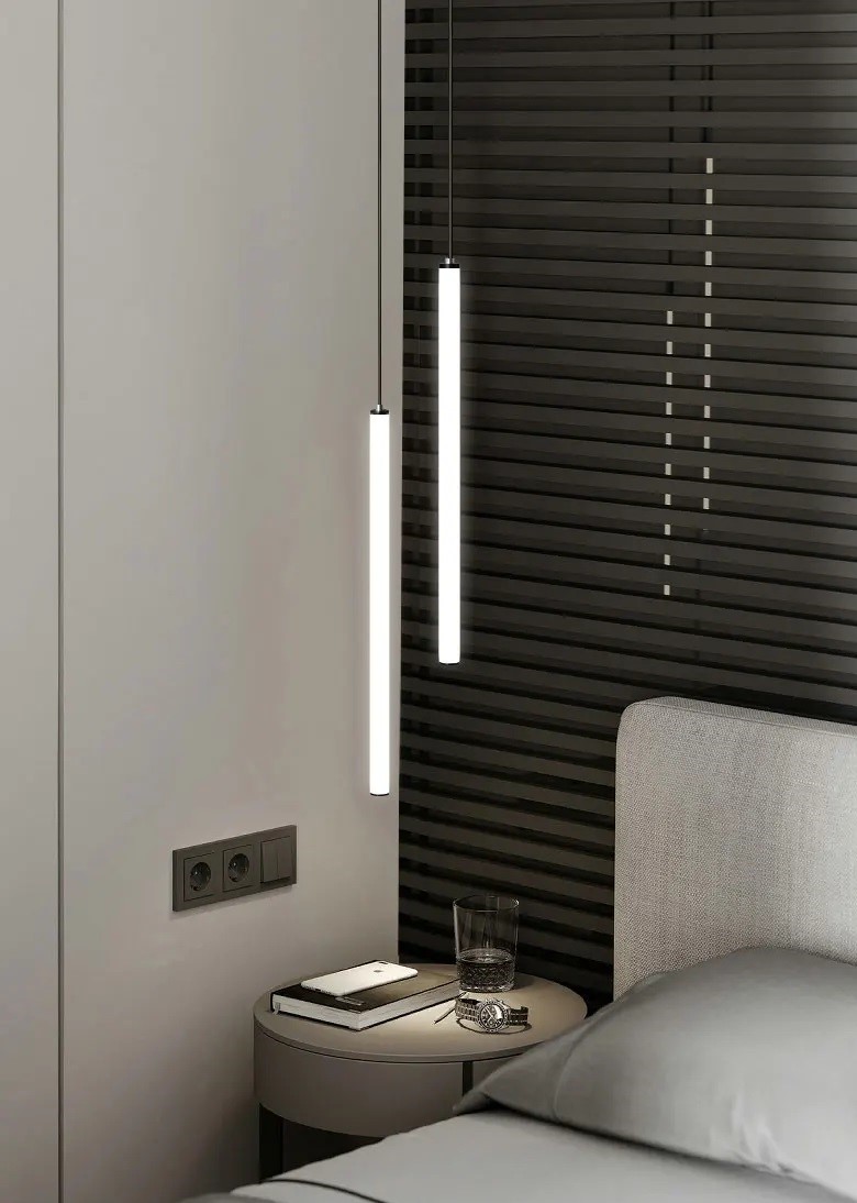 Nowoczesna skandynawska lampa wisząca tuba Ray w kolorze czarnym idealna do salonu, sypialni, biura, jadalni.