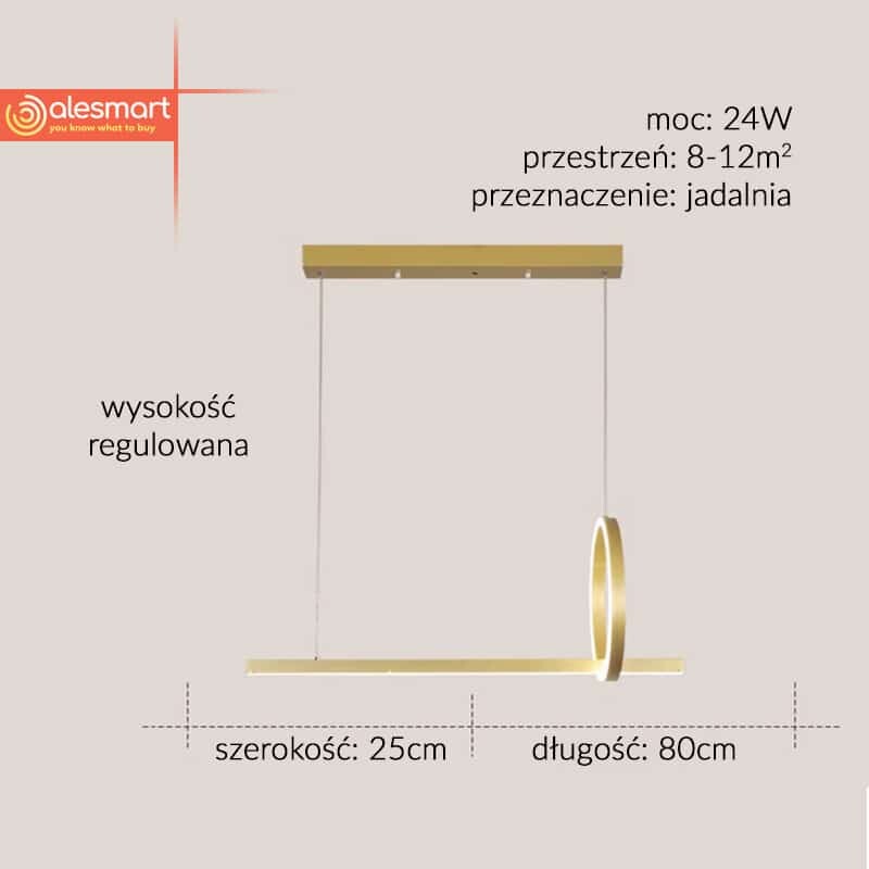Lampa wisząca Altavola z pierścieniem łączy w sobie wyjątkowy i ponadczasowy design w najlepszym wydaniu, co stwarza szereg możliwości aranżacji przestrzeni w Twoim Domu. Oświetlenie z łatwością wkomponuje się w pomieszczenia o klasycznym i nowoczesnym klimacie. Lampa cechuje się funkcjonalnością i jest wykonana z praktycznych i trwałych materiałów, gwarantując jego użytkownikom radość i zadowolenie na wiele lat. Gustowne połączenie kolorów lampy sprawi, że lampa sprawdzi się zarówno w jasnych, jak i ciemnych wnętrzach. Materiały zastosowane w lampie to metal oraz akryl dzięki temu będzie ona łatwa w pielęgnacji i w utrzymaniu czystości. Decydując się na ten model oświetlenia nie tylko odpowiednio rozświetlisz wybrane powierzchnie, ale też zyskasz zachwycającą i cieszącą oko dekorację, która nada wnętrzom niepowtarzalnego wyglądu i elegancji, akcentując zarazem ich detale i wystrój pośród pozostałych mebli i akcesoriów wyposażenia wnętrz.