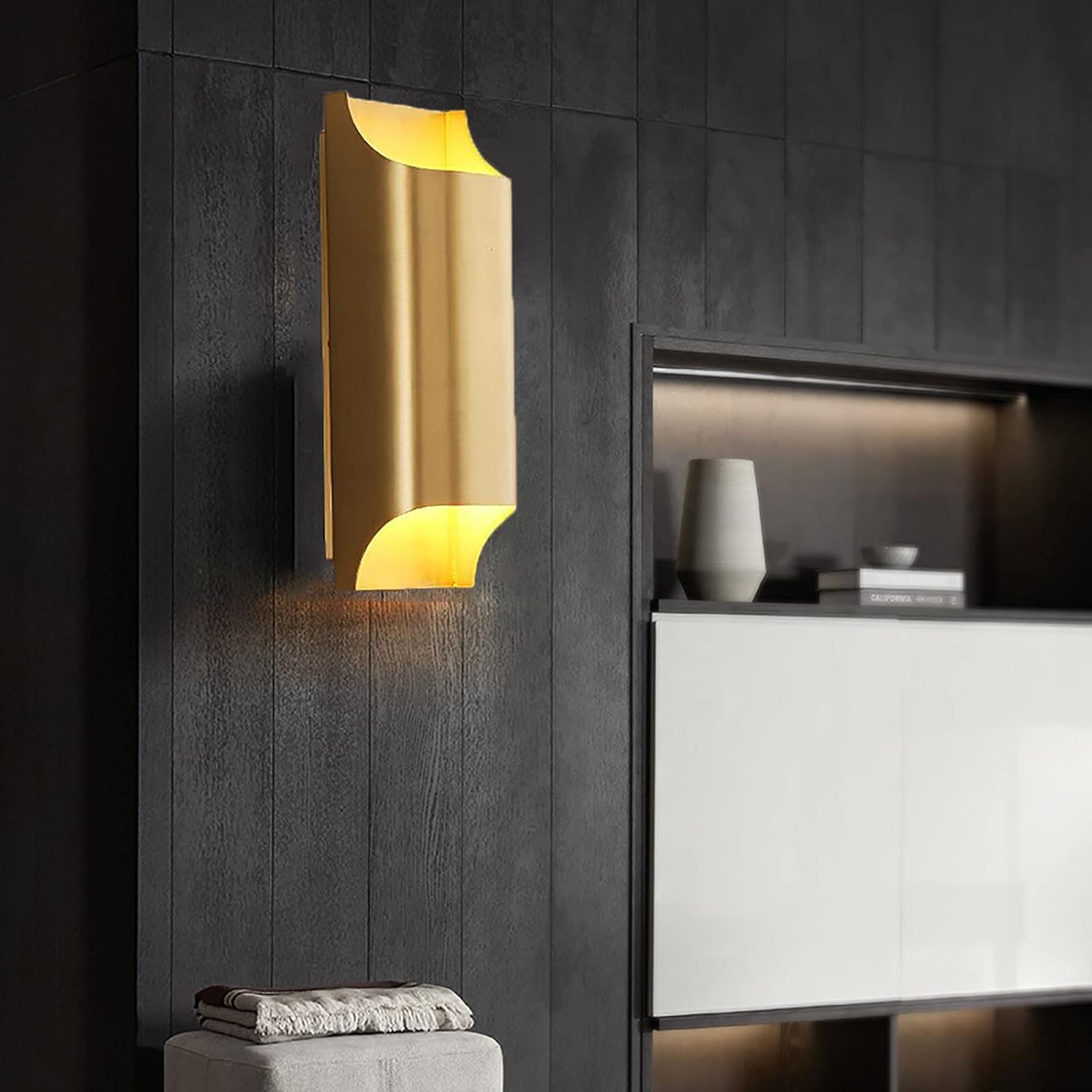Metalowy kinkiet Arino przypominający abstrakcyjną sztukę dodaje modernistycznego uroku do wystroju Twojego domu. Charakteryzuje się intrygującym, minimalistycznym wzorem, klosz posiada złote wykończenie. Zarówno oświetlony, jak i nieoświetlony przyciąga wzrok.