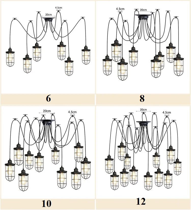 Nowoczesna Wisząca Metalowa Lampa Sufitowa Aura Loft Pająk w Kolorze Czarnym