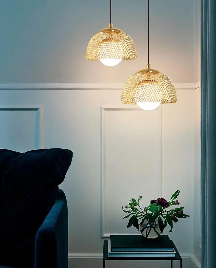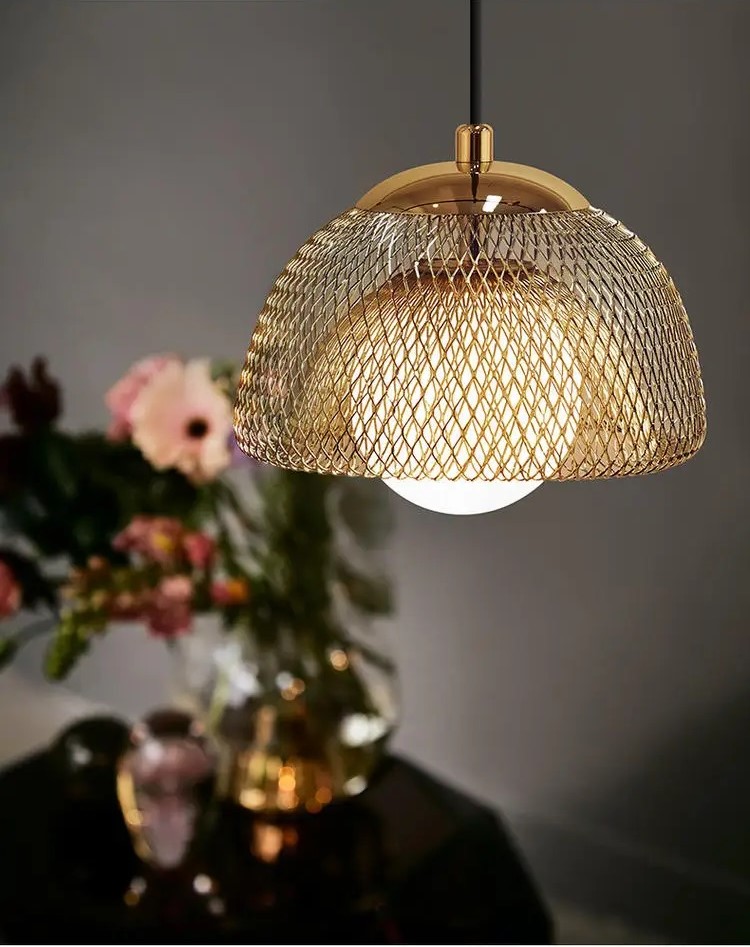 Nowoczesna Metalowa Siatka Lampa Wisząca Umage w Stylu Loftowym w Kolorze Złotym