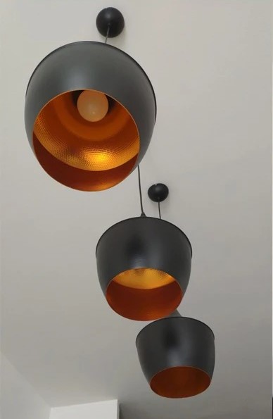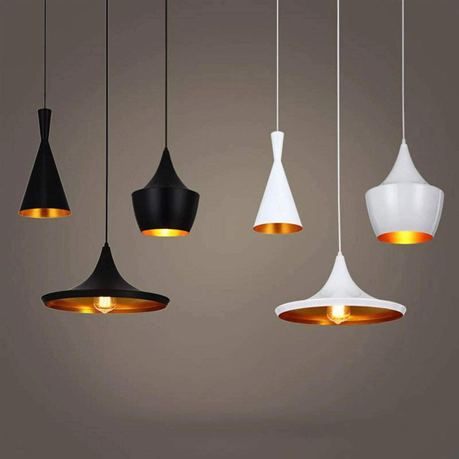 Nowoczesna Skandynawska Metalowa Lampa Wisząca Beat w Kolorze Białym i Czarnym z Dodatkiem Złotego