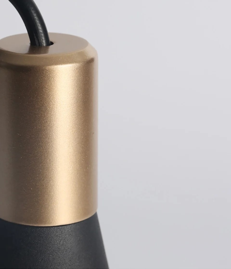 Rozświetl swoje mieszkanie tą stylową, minimalistyczną lampą wiszącą Nori. Jej klosz w kształcie stożka w czarnym lub białym, delikatnie połyskującym kolorze z pewnością przyciągnie uwagę, a złote ścianki dodatkowo wzmocnią nowoczesny design tej lampy. To idealny dodatek do kuchni, czy jadalni, który ogrzeje te pomieszczenia ciepłym, przyjemnym dla oka światłem.