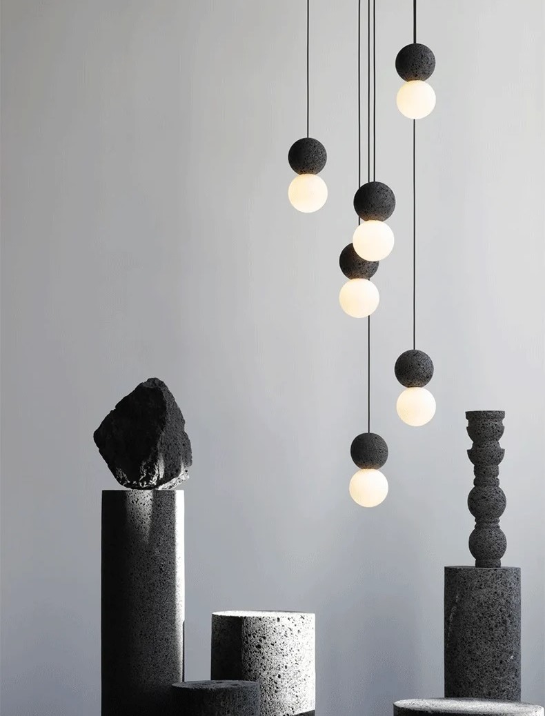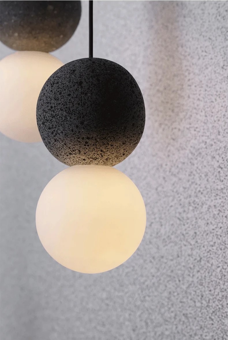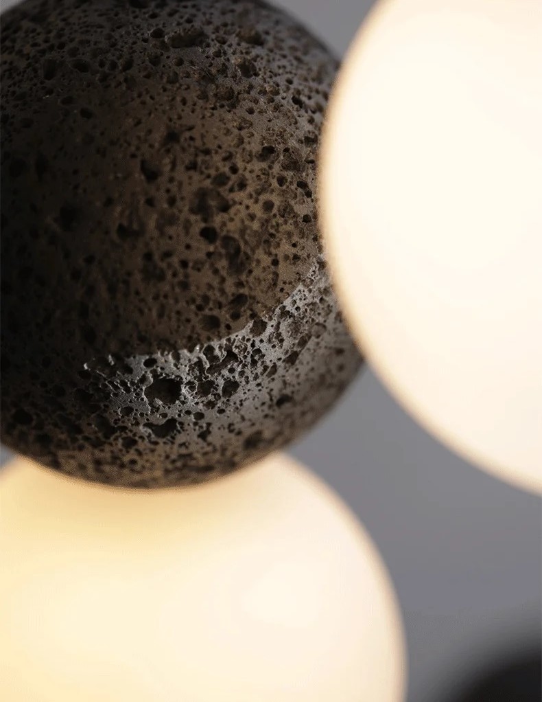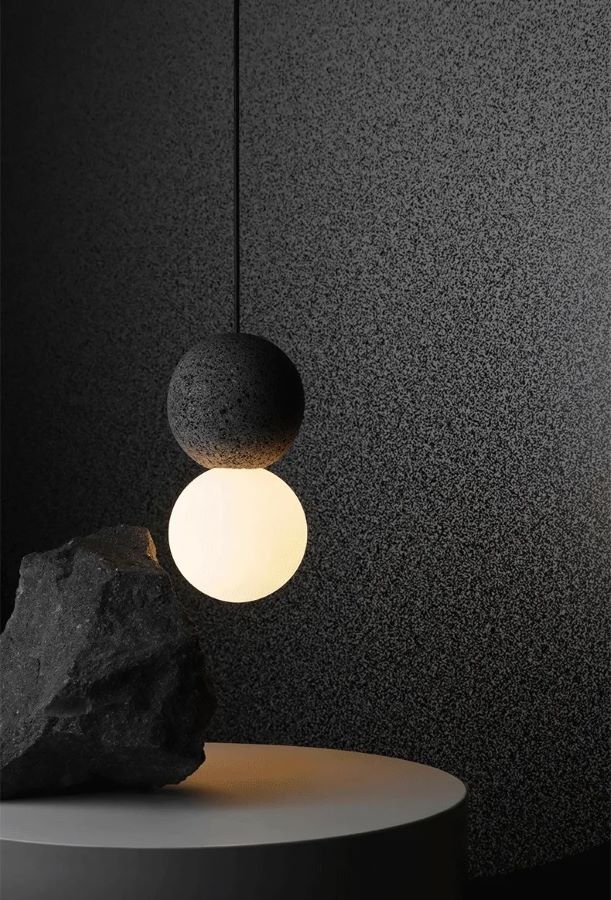 Geometria w najczystszej postaci. Lampa Origo uosabia przeciwstawne esencje odzwierciedlające wulkaniczne skały i dyfuzor z opalizującego szkła. Eksploracja interakcji, światło padające na fakturę skały wulkanicznej, ukazujące jej rzeźbę i kontur. Oba materiały, z których wykonana jest lampa tworzą relację między światłem a kompozycją. Równowaga w swej istocie, lekkość i ciężkość wyrażona w ponadczasowej lampie.