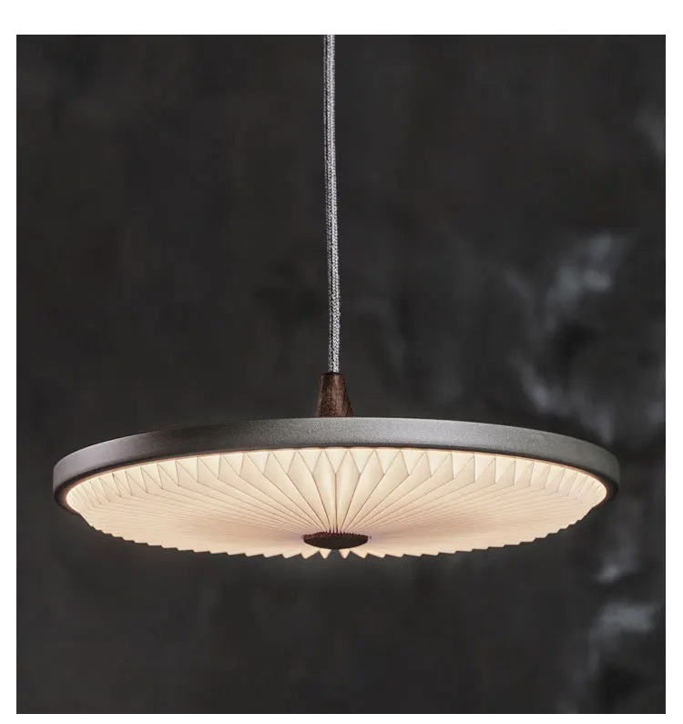 Niepowtarzalna lampa wisząca Soleil, której nazwa wywodzi się z języka francuskiego i oznacza „słońce”. Słowo to doskonale odzwierciedla piękny sposób rozchodzenia się światła lampy. Plisowany biały spód klosza wykonany z akrylu w subtelny sposób odsłania unikalne DNA klasycznej lampy. Całość, wraz z aluminiowo-drewnianą częścią klosza, jest smukła i elegancka, doskonale podkreśla współczesny charakter lampy. Lampa po włączeniu, promieniuje subtelnym światłem, które swoją delikatnością i łagodnością buduje nastrojową atmosferę. Sprawdzi się nad stołem jadalnym w domu, restauracji czy nawet w sali spotkań biznesowych. Soleil w niezwykle estetyczny sposób podkreśla wystrój wnętrza.
