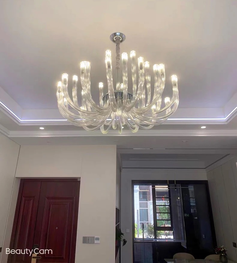 Nowoczesna Szklana Lampa Wisząca California Żyrandol Glamour w Kolorze Srebrnym