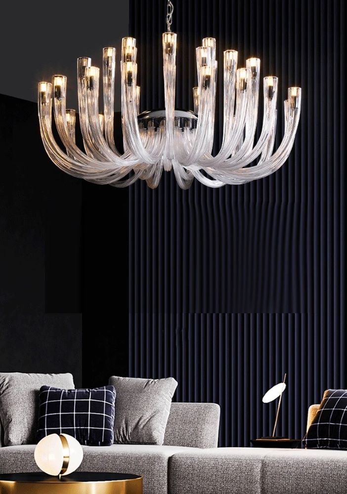 Lampy wiszące California są niezwykle popularne w klasycznych i nowoczesnych pomieszczeniach, w których pełnią nie tylko funkcję oświetlenia, ale także podkreślą luksusowy charakter wnętrz. Szklane rurki rozpraszają strumień światła, dzięki czemu zapanuje przyjemna, relaksująca atmosfera. Lampy przyciągają wzrok swoją elegancką formą. Ich obecność nada nowoczesnym i designerskim wnętrzom indywidualnego wyrazu i doda ciepła nie tylko światłem, ale również samym wyglądem. Oprawy California idealnie sprawdzą się w pomieszczeniach domowych takich jak sypialnia czy salon oraz w przestrzeniach restauracyjno-hotelowych.