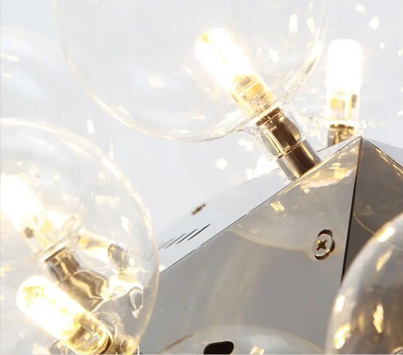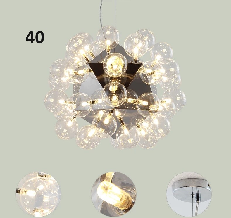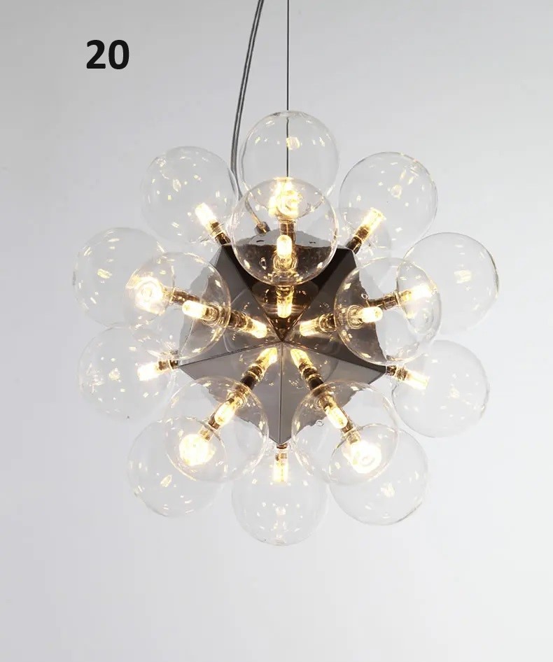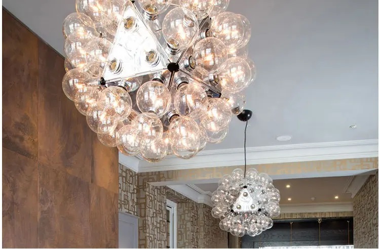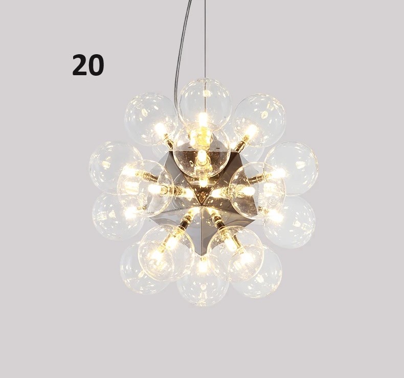 Lampa wisząca Taraxacum Bubbles uzyskuje swój spektakularny wygląd dzięki przezroczystym żarówkom, w które jest wyposażona. Są one wkręcane w liczne gniazdka i wytwarzają nie tylko jasne światło, ale także błyskotliwe iskry, które sprawiają, że pomieszczenie wydaje się cudownie eleganckie. Lampa świeci jasnym, musującym światłem, a w ten sposób powstaje specjalny wygląd szkła, który robi spore wrażenie nawet po wyłączeniu.