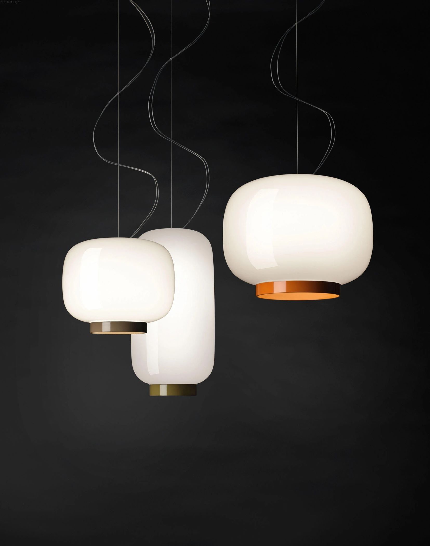 Lampa wisząca Chouchin składa się z trzech różnych modeli, które różnią się kształtem i kolorem. Szczególne jest to, że zostały one zaprojektowane tak, aby wyglądały elegancko i harmonijnie zarówno indywidualnie, jak i w połączeniu. Zainspirowane zostały tradycyjnymi japońskimi lampionami, które zazwyczaj wykonane są z papieru lub bambusa i często służą jako uroki szczęścia. Efektem jest imponująca nowa interpretacja, która oddaje magię latarni i tworzy równie miękkie światło o wspaniałej atmosferze. Korpus Chouchin wykonany jest ze szkła, które zostało pomalowane na zewnątrz na olśniewający, nieprzezroczysty kolor. Przy dolnym otworze klosza pozostawiono małą obręcz, która zaczyna świecić po włączeniu światła. Tutaj światło jest emitowane bezpośrednio w dół, dzięki czemu idealnie nadaje się do oświetlenia nad stołem lub ladą. Czy to we własnej jadalni, czy też w restauracji, barze lub kawiarni, lampa Chouchin przekonuje wzornictwem i efektem oświetleniowym w równej mierze.