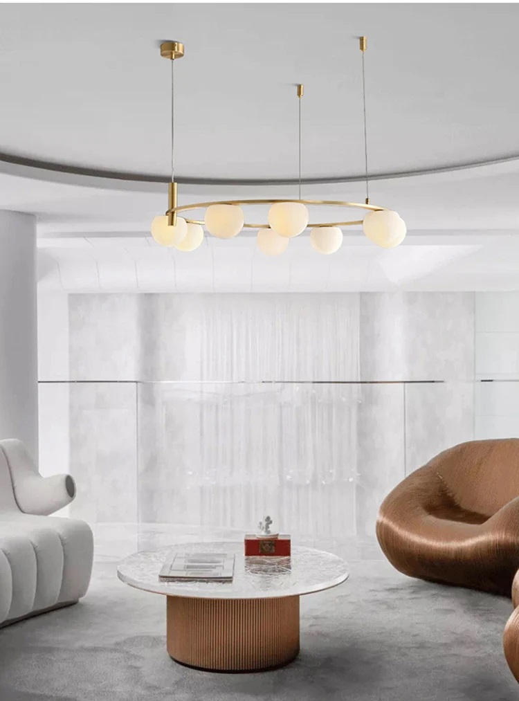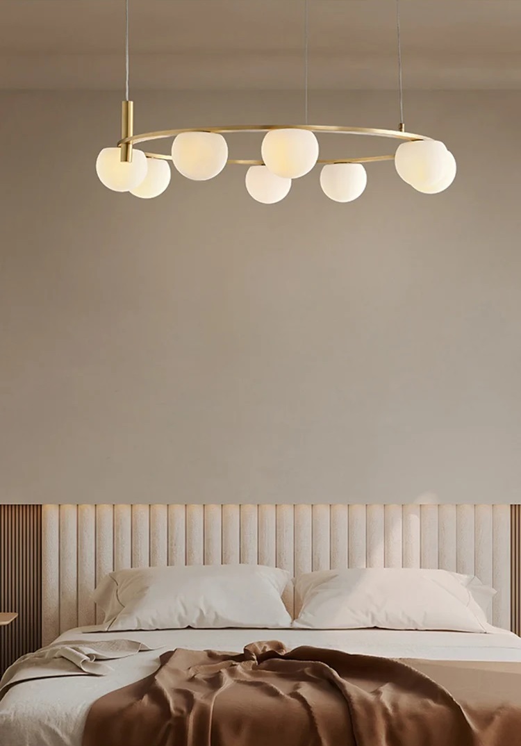 Nowoczesna lampa wisząca Miira to przykład lampy, która będzie idealnym oświetleniem w wielu różnych aranżacjach. Świetnie odnajdzie się we wnętrzach o charakterze loftowym, nowoczesnym, industrialnym, a także minimalistycznym. Uniwersalność tej oprawy przejawia się w jej prostym, okrągłym kształcie, ze szklanymi kulami, które pozwolą na idealne doświetlenie każdego pomieszczenia.