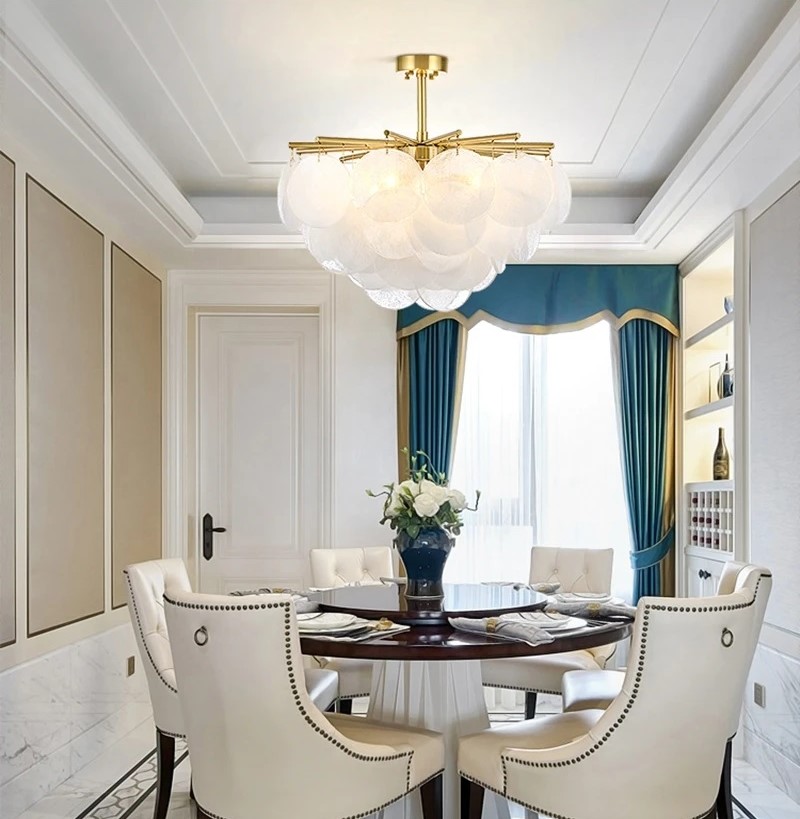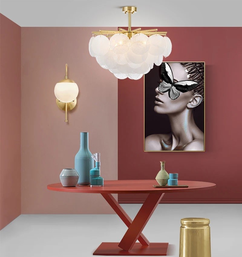 Lampa wisząca Tokio prezentuje się niezwykle oryginalnie. Cudowny klosz nada pomieszczeniu delikatności i subtelności. Złota podstawa pięknie się z nim komponuje, razem tworzą cudowną lampę wisząca w stylu modern classic. Lampa sufitowa Tokyo znajdzie swoje zastosowanie jako lampa nad stół lub lampa do salonu czy sypialni.