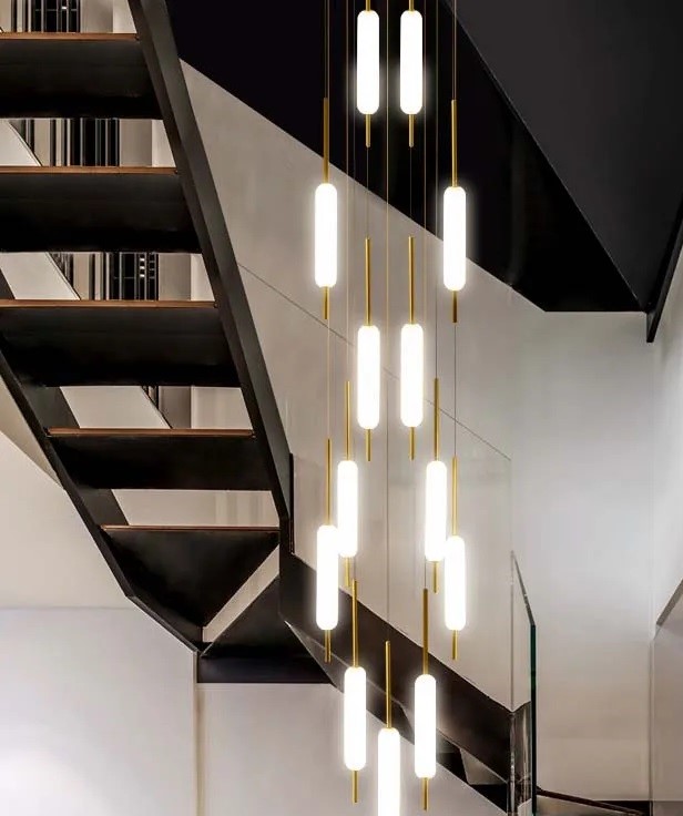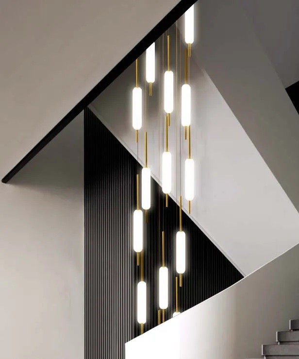 Nowoczesna Szklana Designerska Lampa Wisząca Typha Żyrandol w Kolorze Czarnym i Złotym