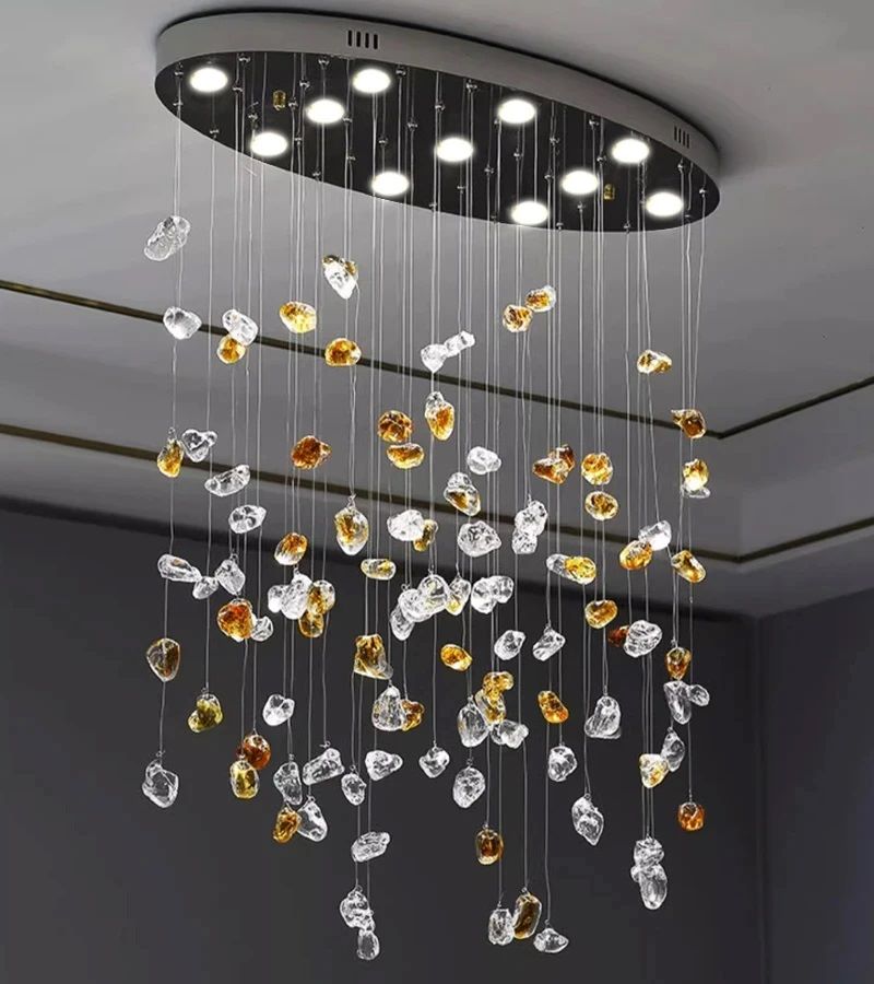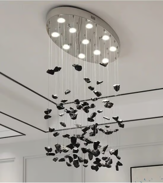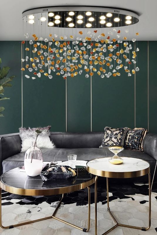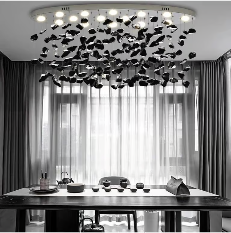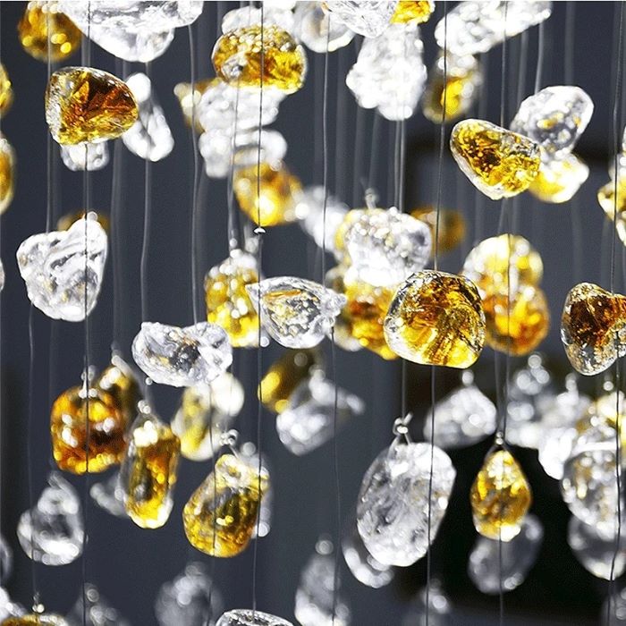 Lampa wisząca Pianopoli zachwyca swoją charakterystyczną, dekoracyjną formą. Na metalowej podsufitce podwieszono czarne i wielokolorowe kamienie. Ukryte między nimi źródła światła emitują strumień świetlny, który odbija się od tych wisiorków, wprowadzając do pomieszczenia przyjemną atmosferę, sprzyjającą chwilom relaksu. Możliwość regulowania wysokości pozwala umieścić oprawę na poziomie, który będzie dopasowany do gabarytów pomieszczenia, pełnionej funkcji oraz indywidualnych preferencji użytkownika. Lampa wisząca Pianopoli doskonale sprawdzi się zarówno w klasycznych, jak i nowoczesnych pomieszczeniach domowych – na przykład w sypialni lub pokoju dziennym, w których stanie się dodatkowo przyciągającym uwagę elementem dekoracyjnym.