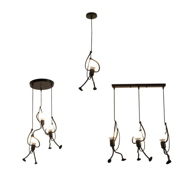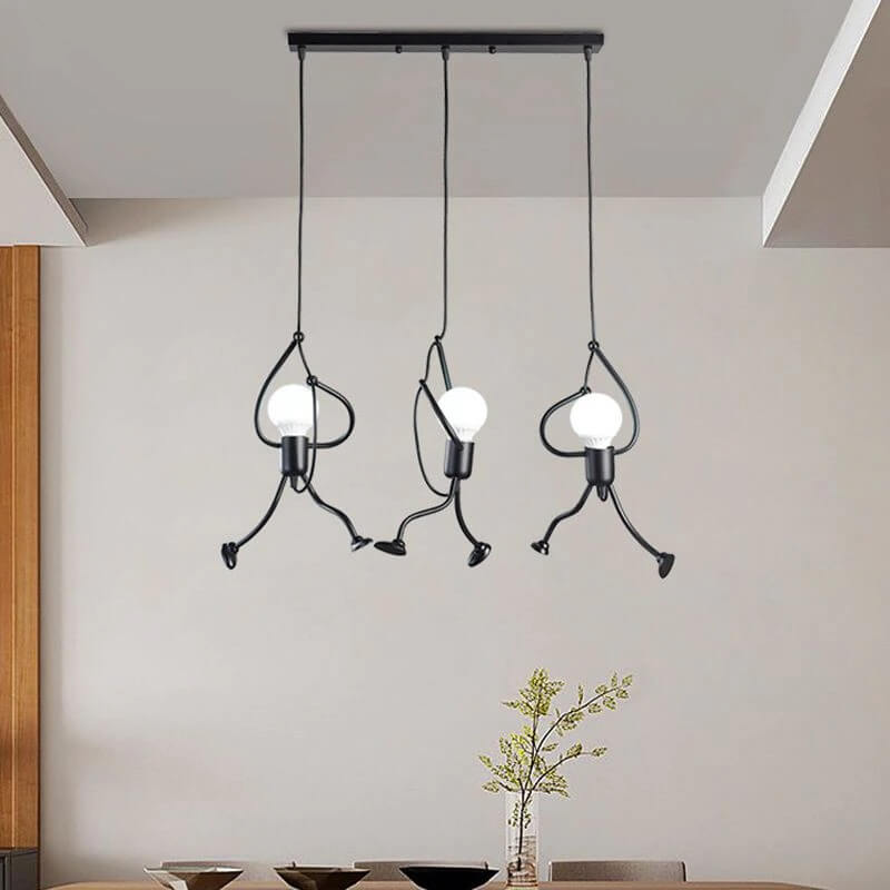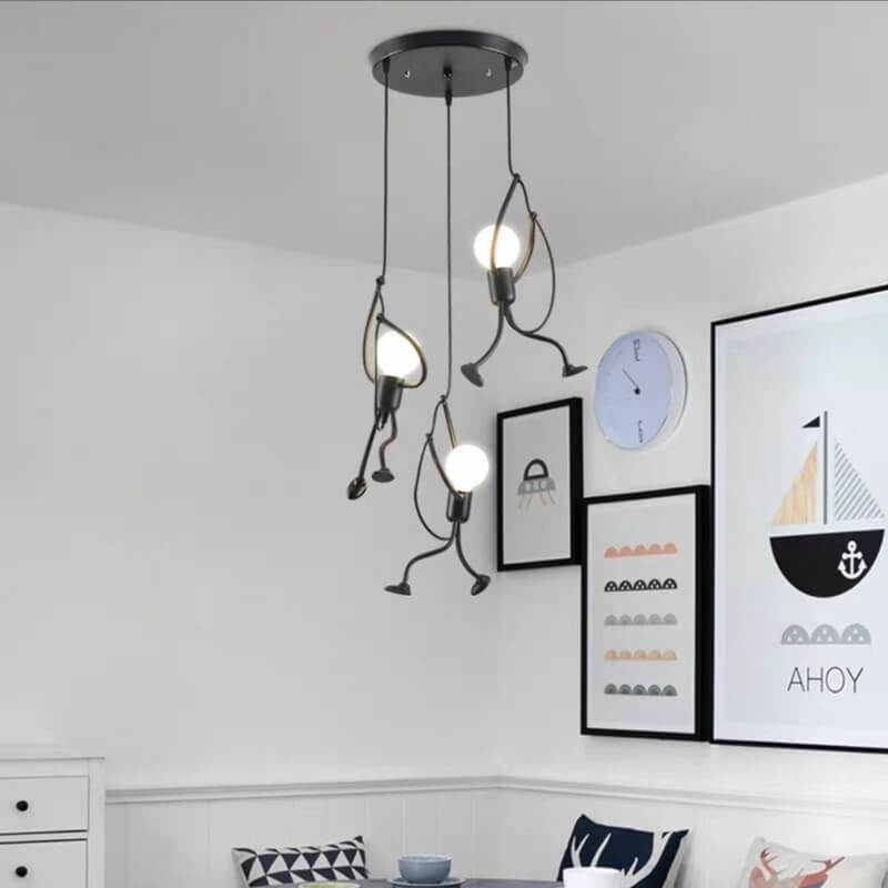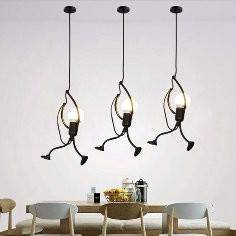 Oryginalna industrialna lampa wisząca Ludziki loft w kolorze czarnym idealna do sypialni, salonu, kuchni.