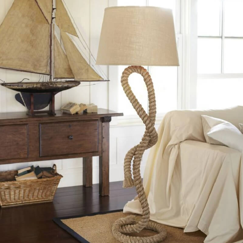 Rustykalna i oryginalna lampa podłogowa Sailor idealna do sypialni, salonu, gabinetu.