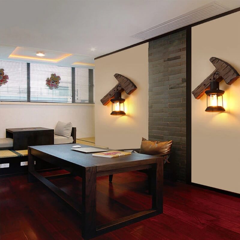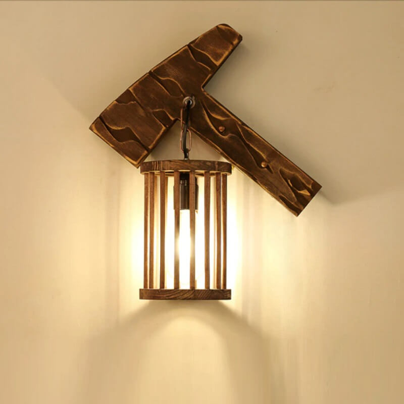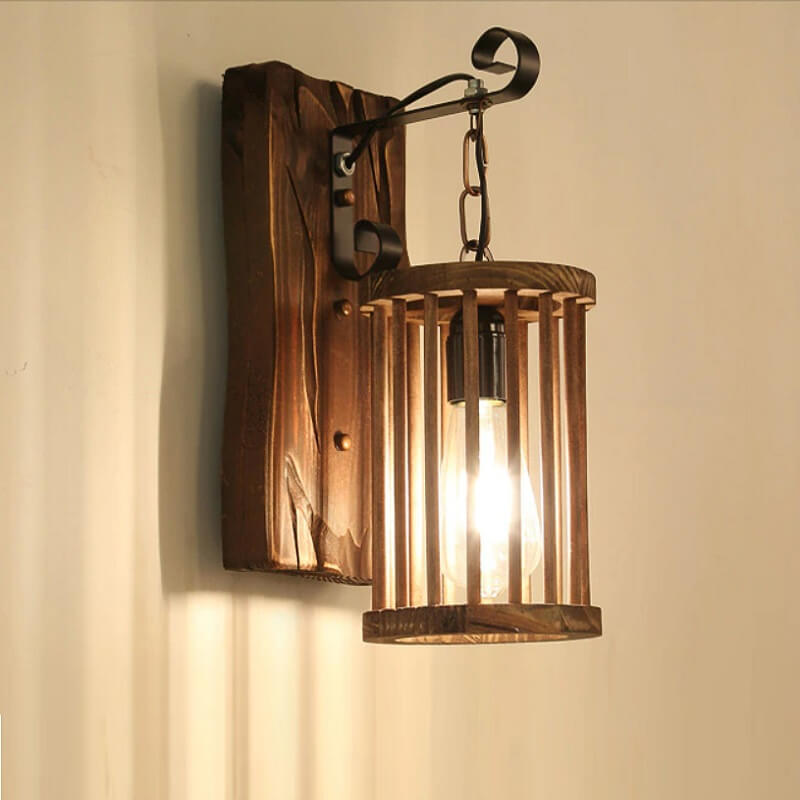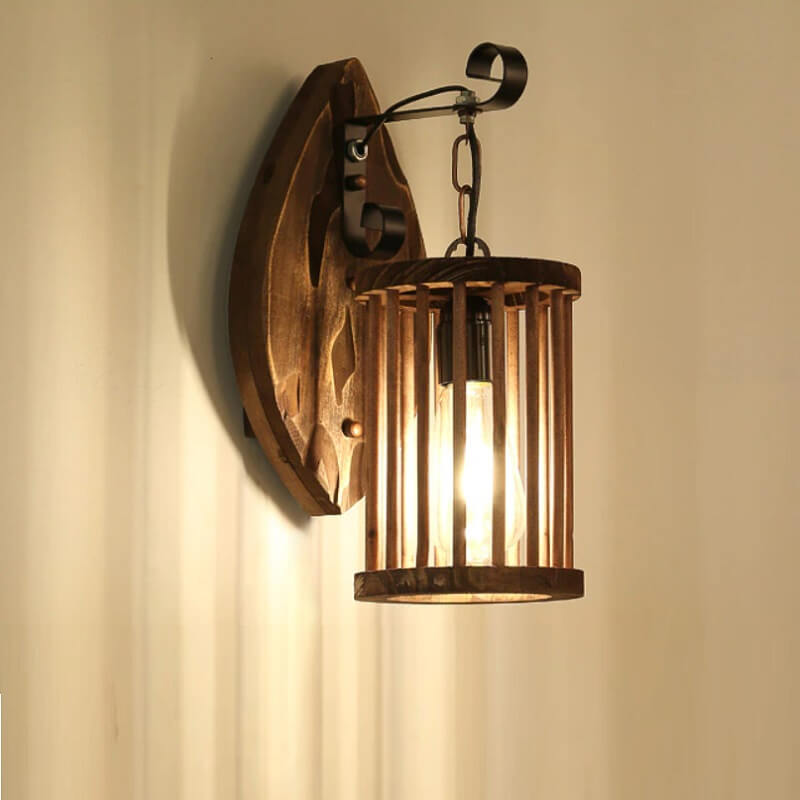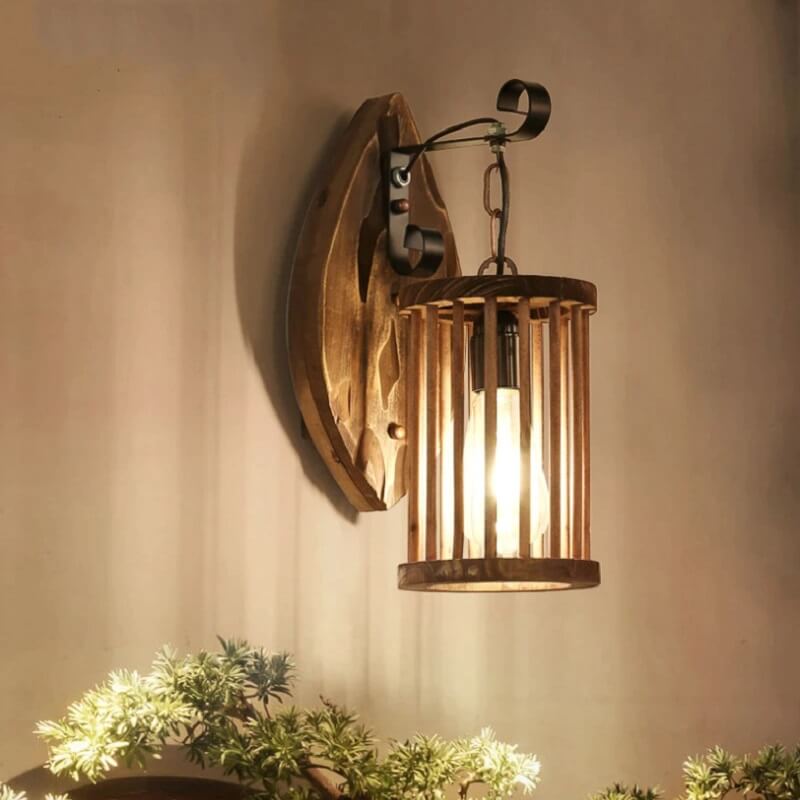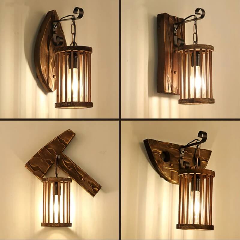 Oryginalny Drewniany Kinkiet Ścienny Rustykalny