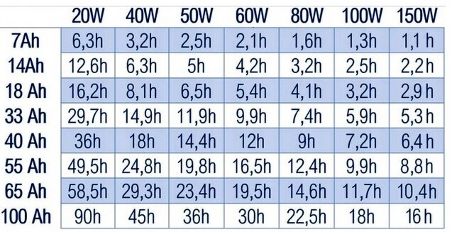Przedstawiona tabela prezentuje czas potrzebny do naładowania dostępnych na rynku akumulatorów w zależności od mocy układu fotowoltaicznego.