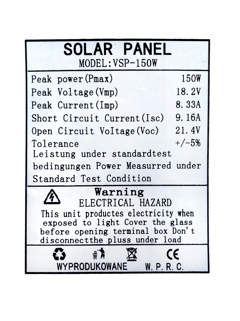 ZESTAW FOTOWOLTAICZNY 150W ZESTAW ZAWIERA:
