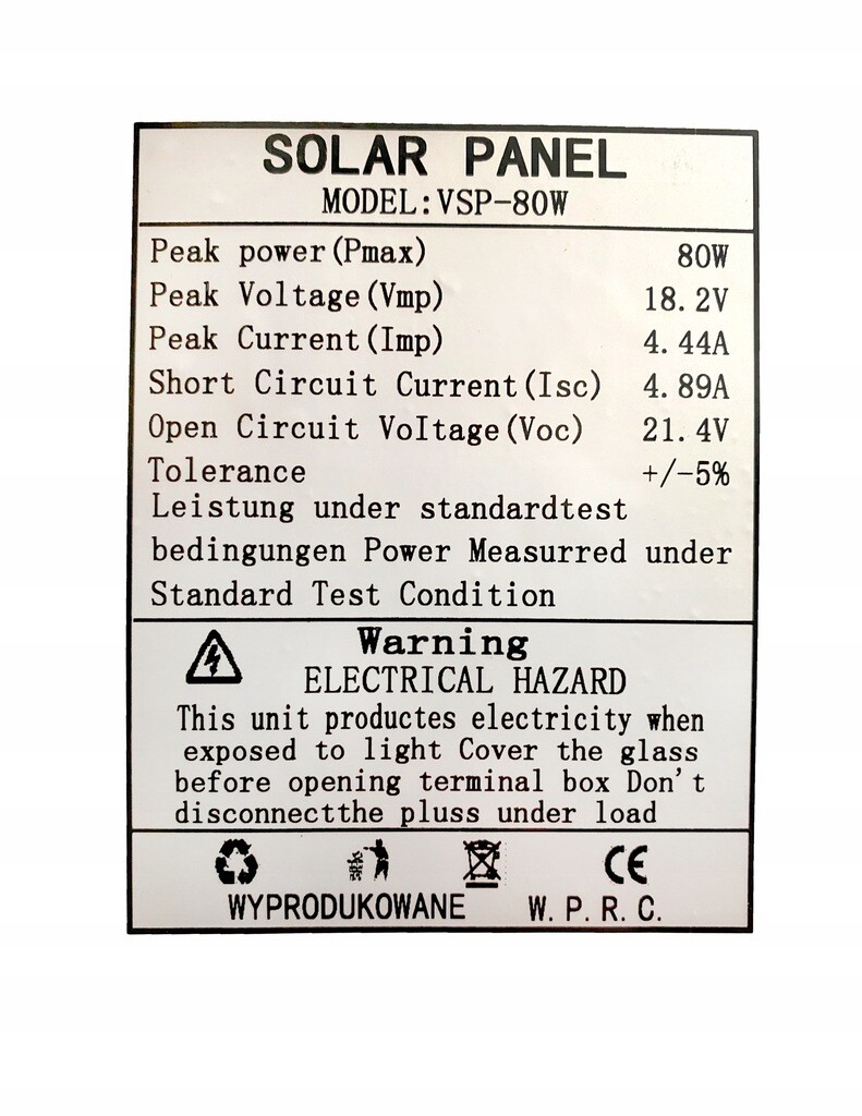 PANEL FOTOWOLTAICZNY POLIMORFICZNY O MOCY 70W