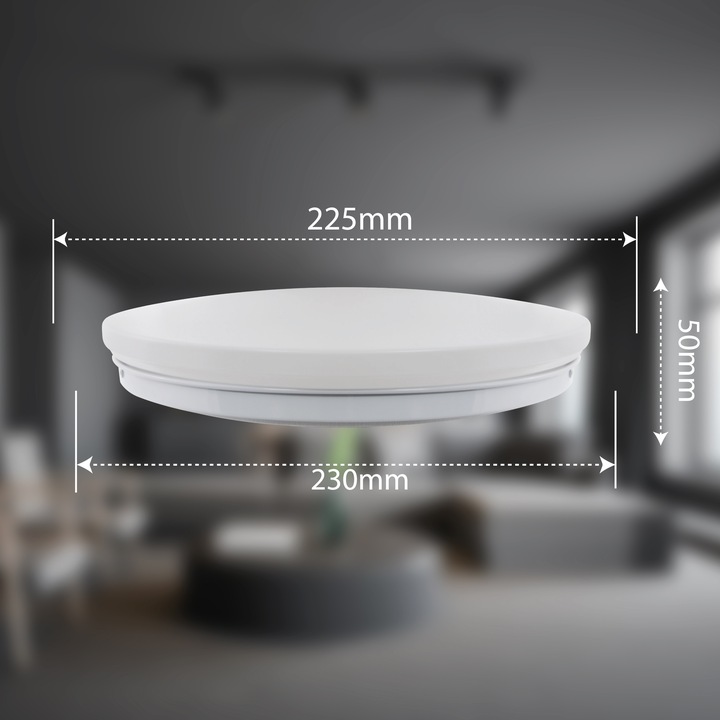 PLAFON LED – podstawa lampy wykonana z metalu w kolorze białym, klosz z tworzywa w kolorze białym bardzo dobrze rozprasza światło. Lampa została wyposażona w wysokiej jakości moduł LED o mocy 12W (1200 lumenów) i barwie światła neutralnej 4000k. Lampa dzięki stopni ochrony IP 44 świetnie nadaje się do pomieszczeń takich jak łazienka.