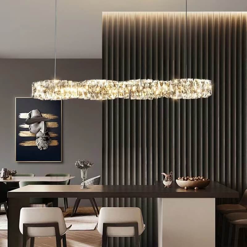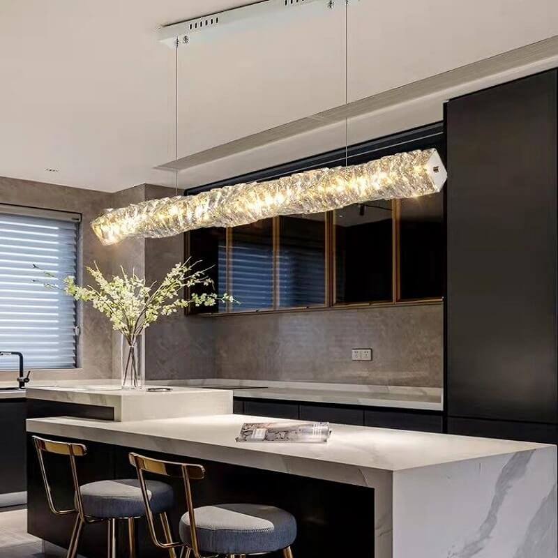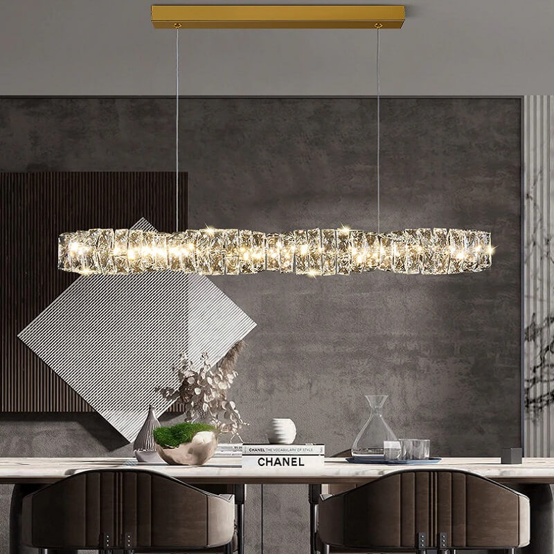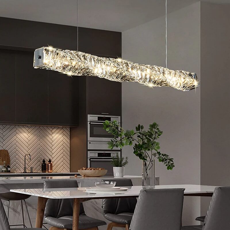 Podłużna Lampa Wisząca Kryształowa Glamour