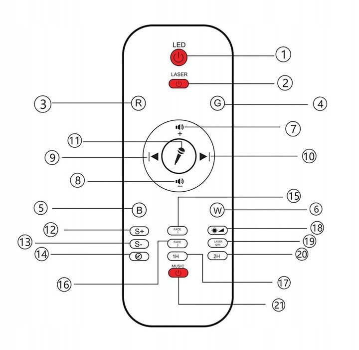 - Tryb impreza – Zmiany kolorów są dynamicznie zsynchronizowane, aby dostosować się do rytmu muzyki, można spróbować rytmicznie klaskać w dłonie, oświetlenie zmienia się wraz z dźwiękiem, doskonały efekt interaktywny!