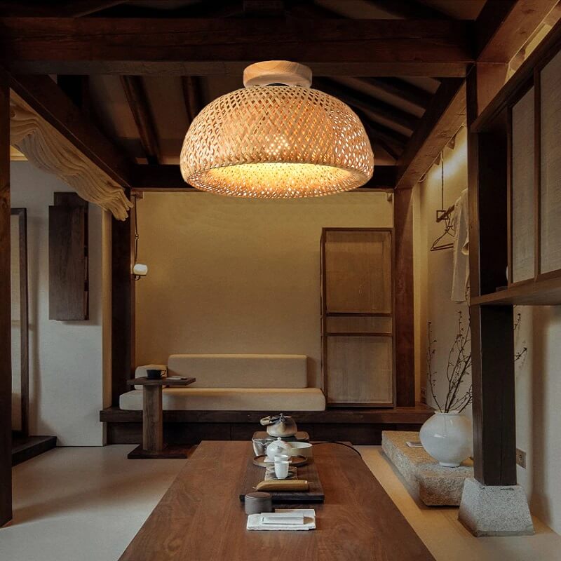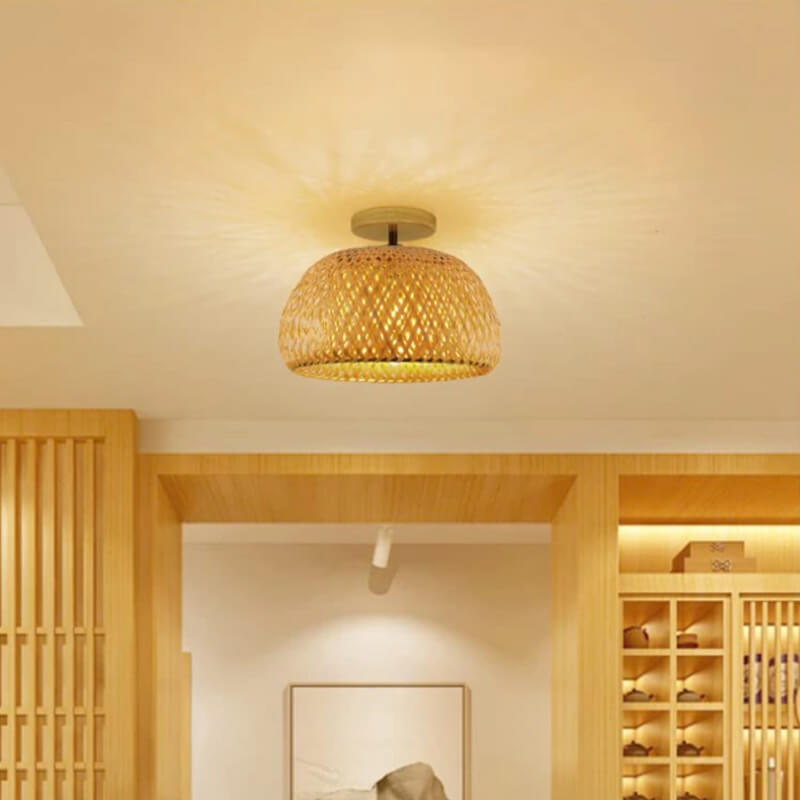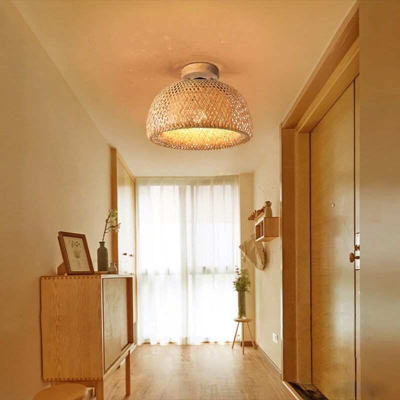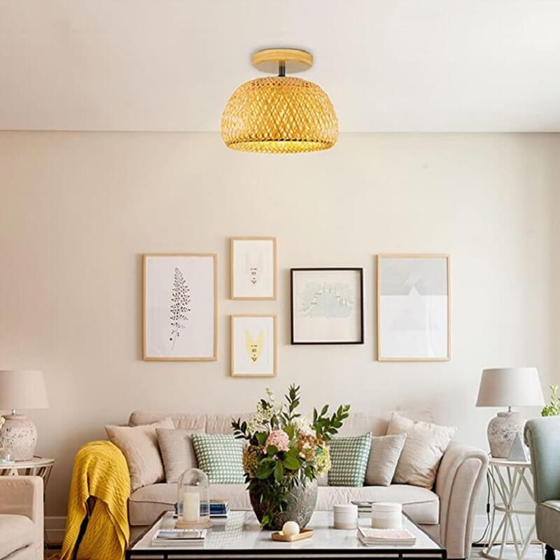 Bambusowa naturalna lampa sufitowa w stylu boho idealna do salonu, sypialni, kuchni, korytarza.