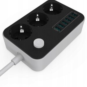 Listwa zasilająca 3 Gniazda Przedłużacz 1.8 metra + 6x USB