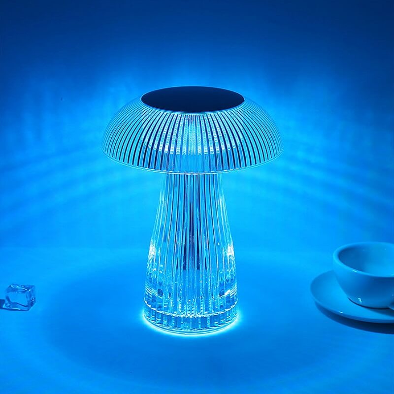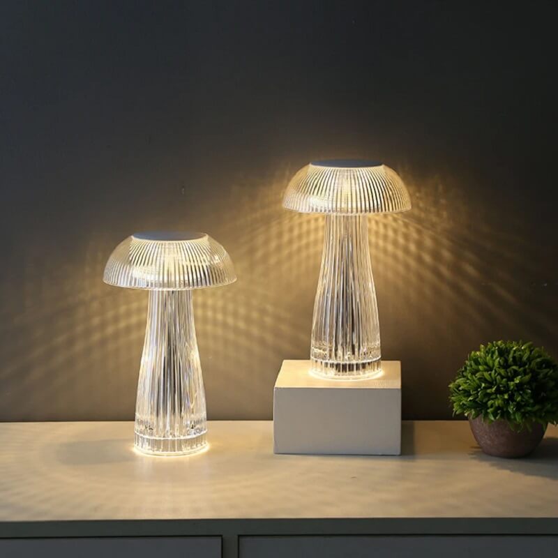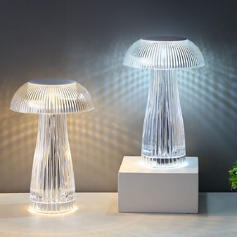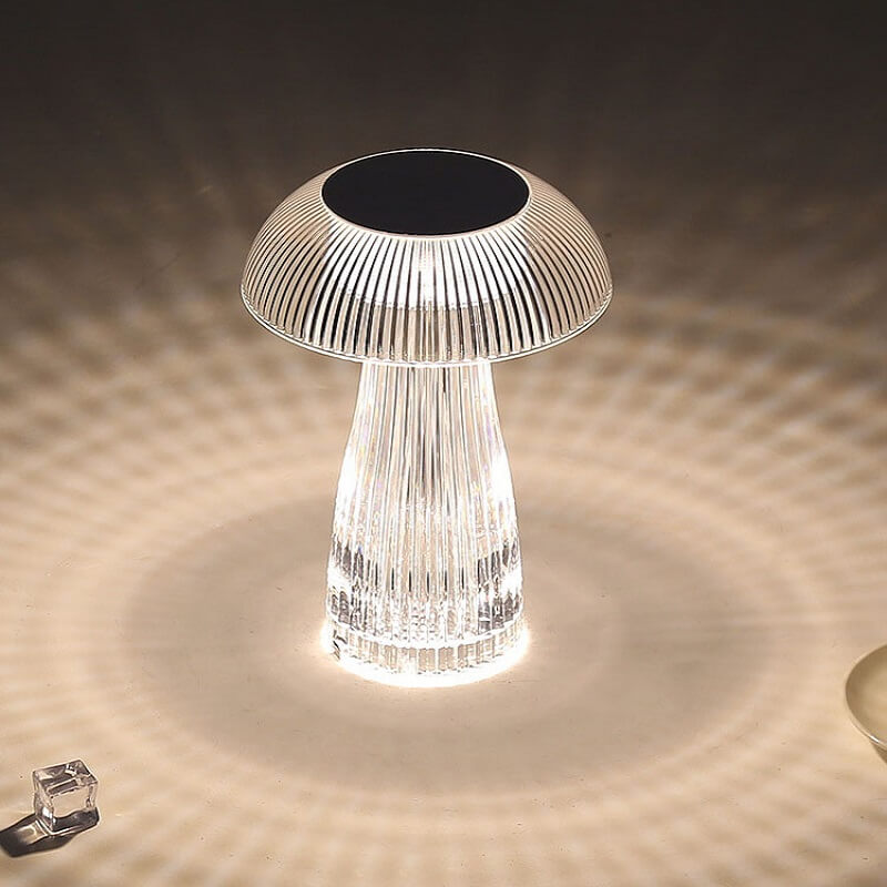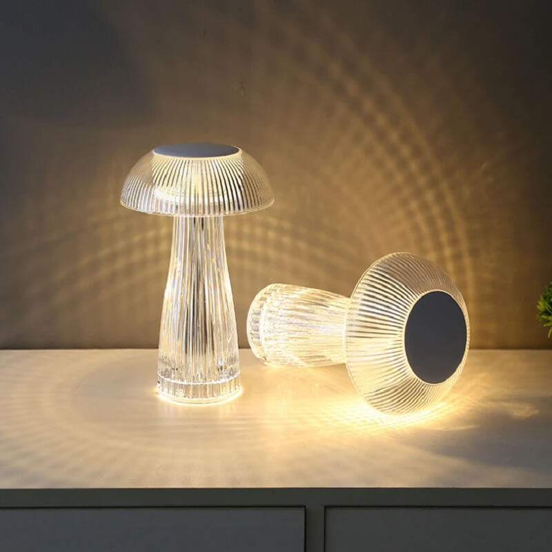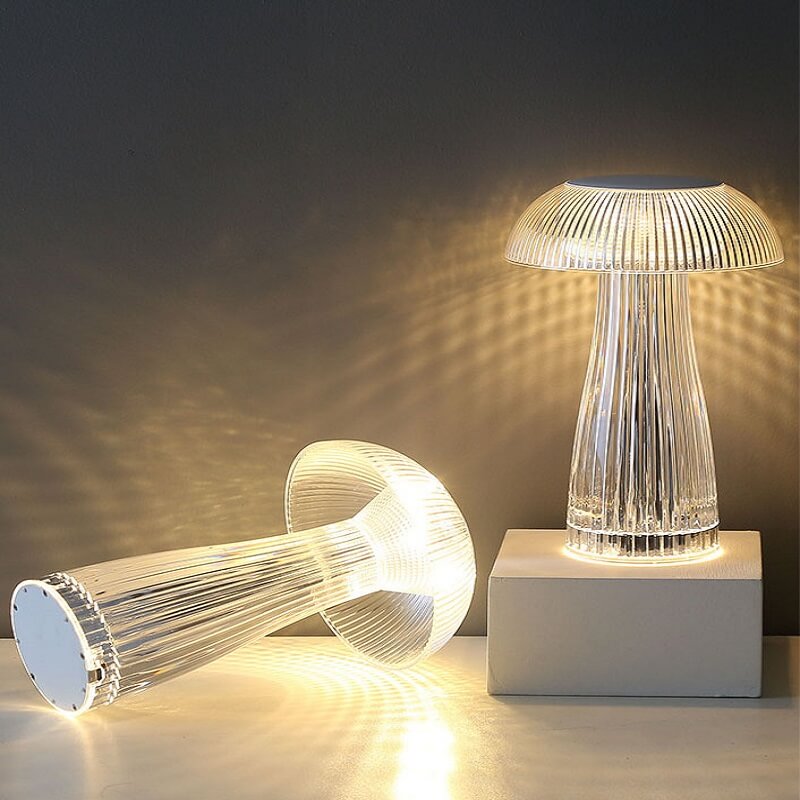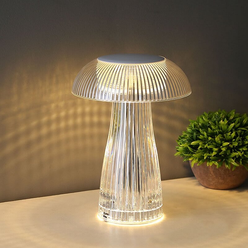 Nowoczesna przezroczysta lampka nocna Grzybek. Oryginalna i funkcjonalna idealna do sypialni, salonu, gabinetu.