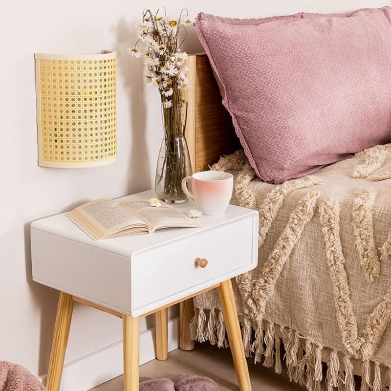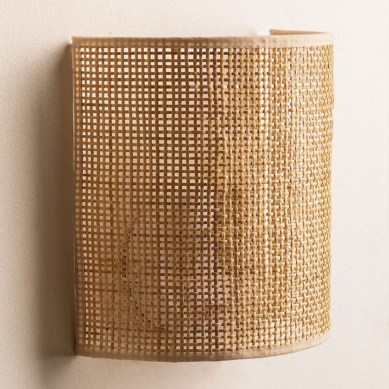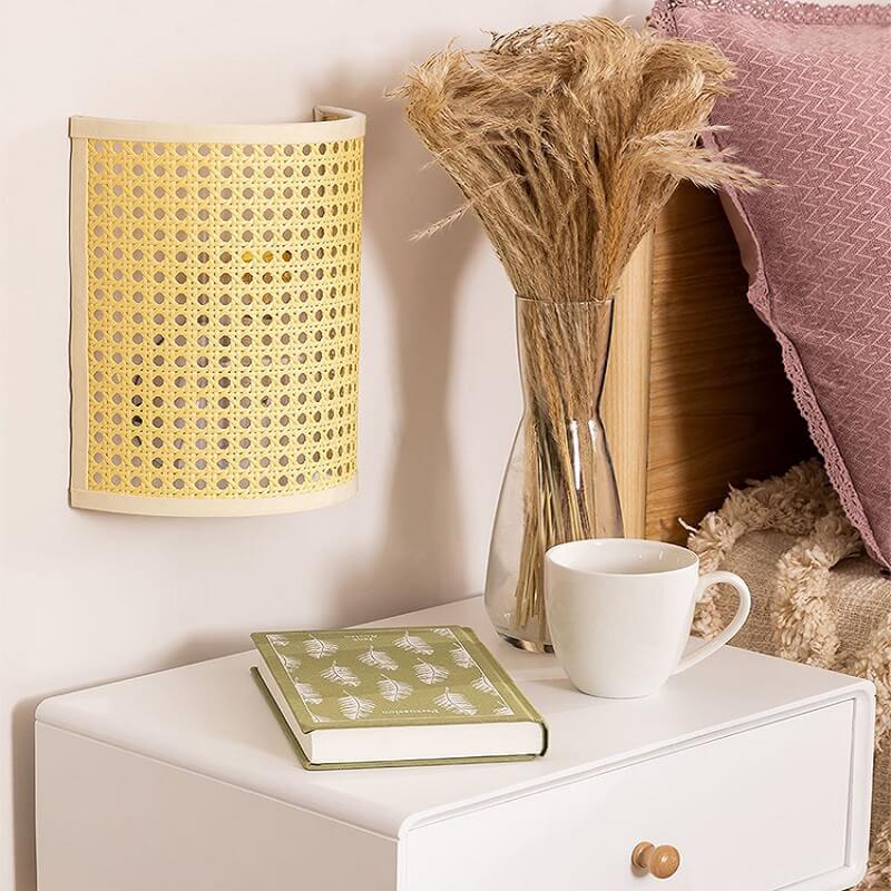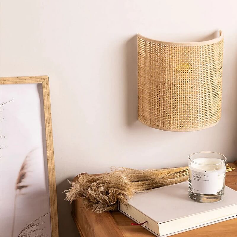 Rattanowa naturalna lampa ścienna w stylu boho. Minimalistyczny kinkiet idealny do sypialni, salonu, korytarza.