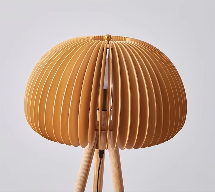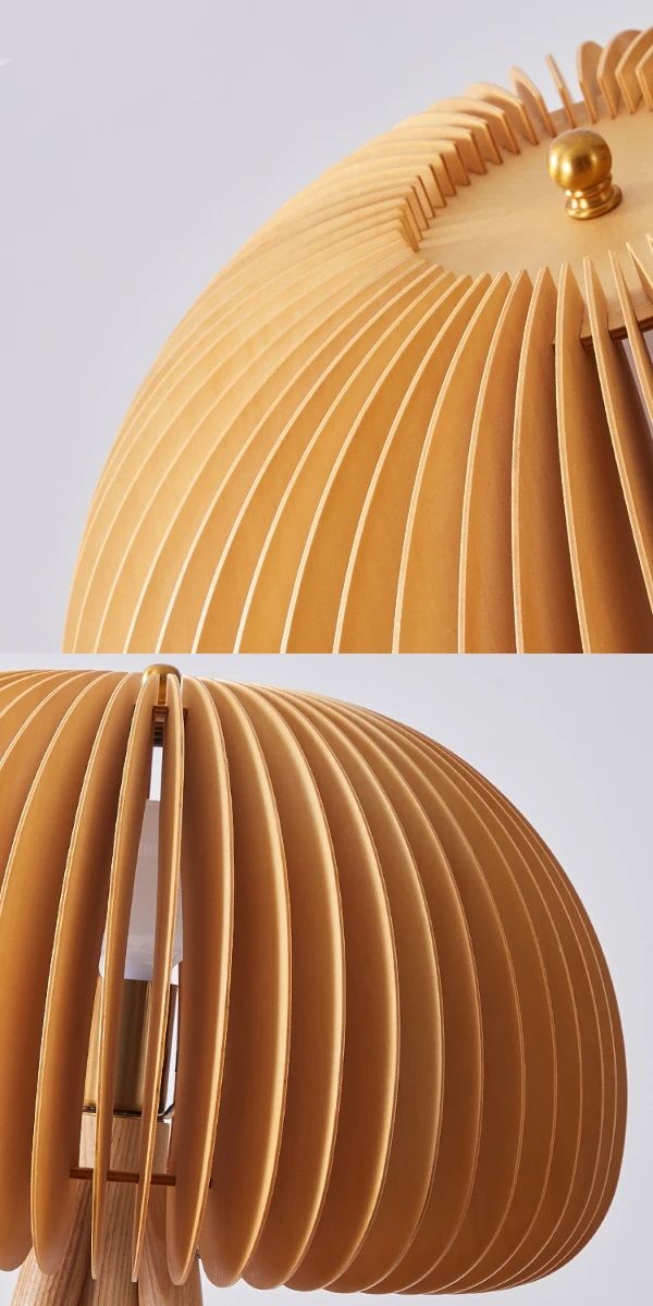 Lampa stołowa Volum w stylu boho. Ta lampa stołowa inspirowana stylem boho, została wykonana z drewna o naturalnym kolorze. Emanuje ciepłym i delikatnym światłem, które dodaje przytulnego klimatu każdemu wnętrzu. Dzięki swojemu unikalnemu kształtowi i naturalnej barwie, doda uroku każdemu salonowi lub sypialni. Misterna struktura lampy pozwala światłu subtelnie prześwitywać przez cienkie drewniane listewki i rzucać nieoślepiające światło, które tworzy naturalną atmosferę.