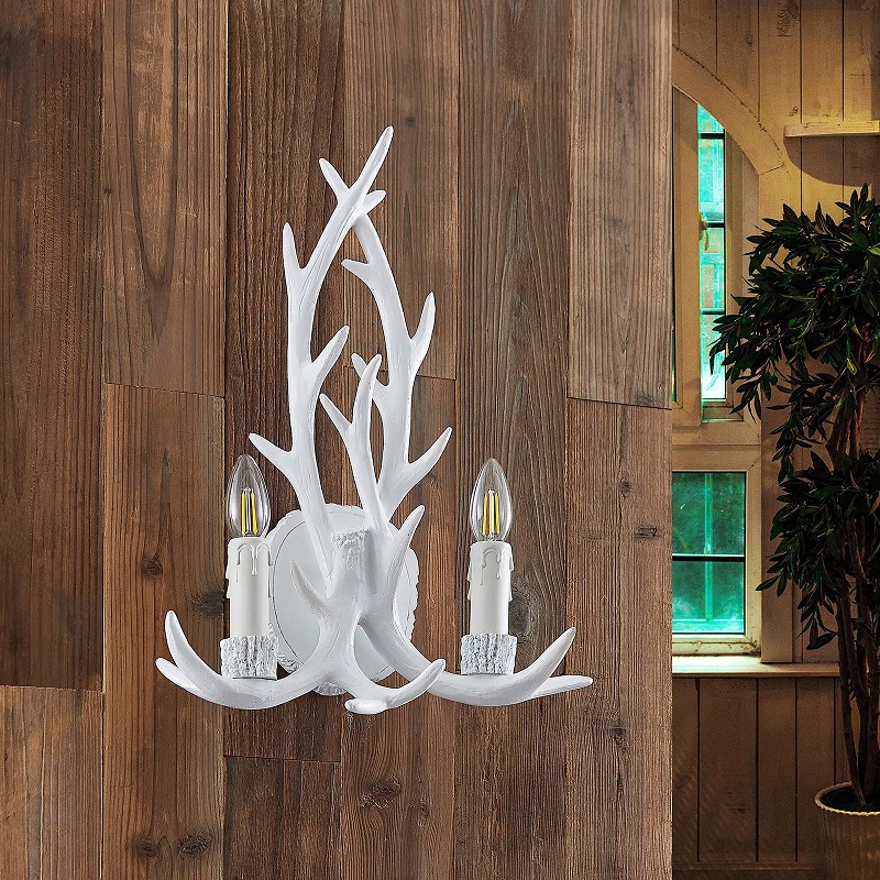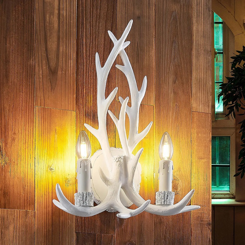 Rustykalna i oryginalna lampa ścienna Lindby. Kinkiet poroże w kolorze białym i brązowym idealny do salonu, sypialni, kuchni, jadalni.
