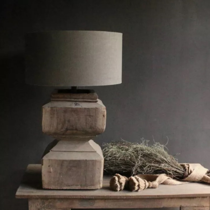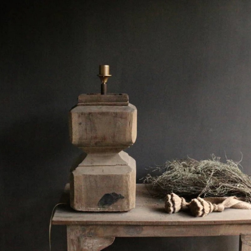Rustykalna Lampa Stołowa Z Litego Drewna
