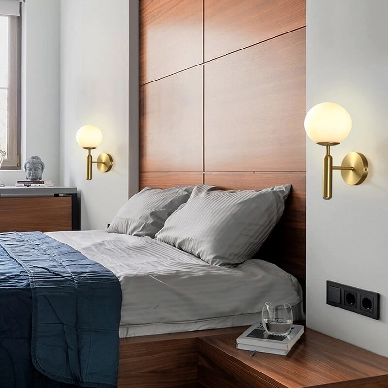 Noeoczesna i skandynawska lampa ścienna Miira w kolorze czarnym i złotym idealna do sypialni, salonu, gabinetu, korytarza.