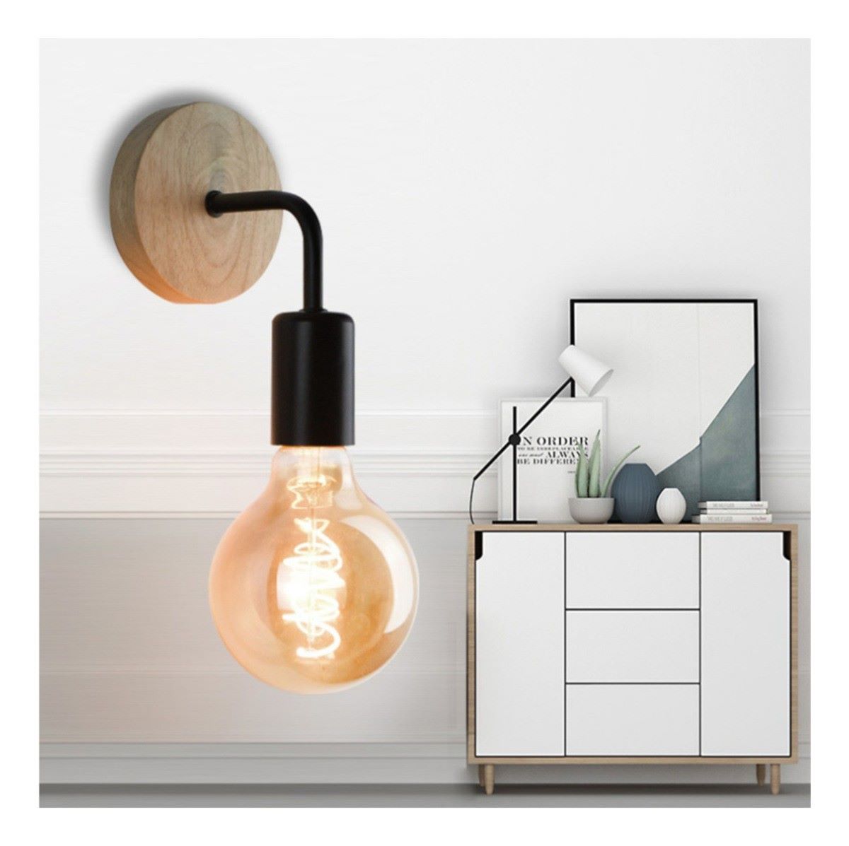 Minimalistyczna skandynawska lampa ścienna Vito w kolorze czarnym i białym idealna do salonu, sypialni, korytarza.