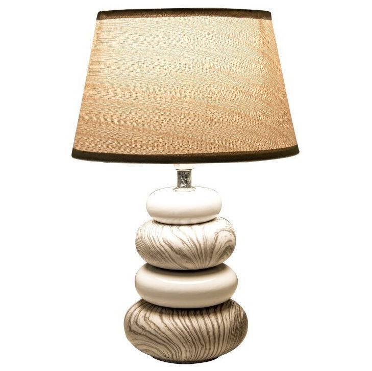 Lampka Stołowa Rock świetnie odnajdzie się w Twojej klasycznej i tradycyjnie urządzonej sypialni. Na jej całość składa się jasny, abażurowy klosz oraz ceramiczna oprawa przypominająca równomiernie nakładające się na siebie ozdobne kamienie. Umieszczone w jej wnętrzu źródło światła otuli całe wnętrze miękkim i delikatnym blaskiem. Dzięki takiej kompozycji, proponowane oświetlenie bardzo dobrze sprawdzi się na stoliku w pobliżu Twojego łóżka, jako element wystroju wydzielający strefę spokojnego snu i wypoczynku podczas wieczorowej pory.