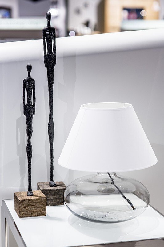 Designerska lampa stołowa szklana