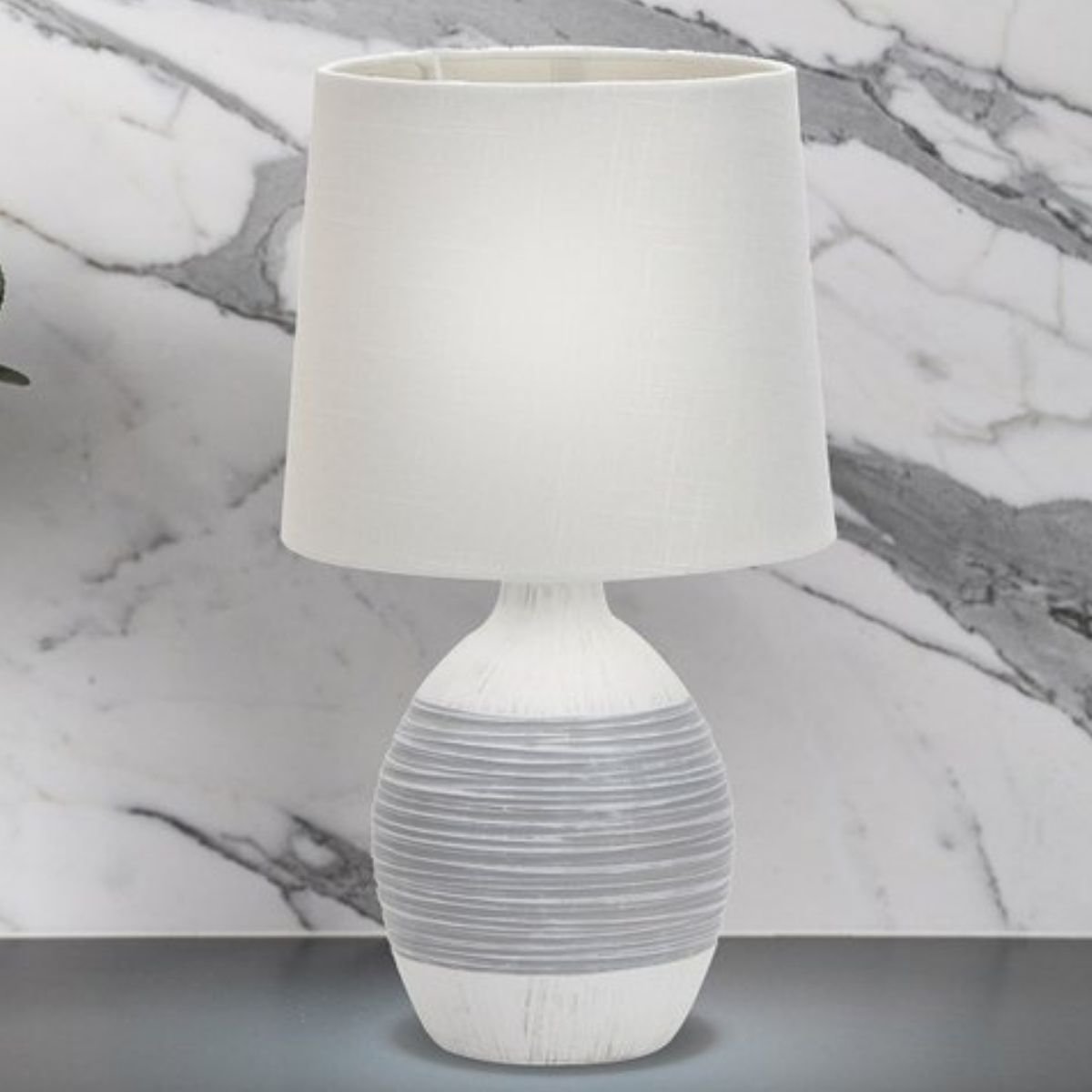 Lampa stołowa wykonana z najwyższej jakości ceramiki służy nie tylko jako forma oświetlenia w tradycyjnym wydaniu, ale również jako piękna ozdoba Twojego wnętrza. Idealnie pasować będzie do pokoju w stylu klasycznym lub skandynawskim, czy sypialni. Abażur wykonany z tkaniny w połączeniu z PCV. Lampa posiada włącznik na przewodzie zakończony wtyczką.