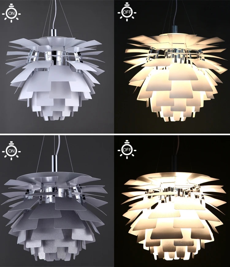 Urozmaicona konstrukcja sprawia, że ta wisząca oprawa jest czymś wyjątkowym. Artichoke przyciąga wzrok jako obiekt designerski w sferze prywatnej, a także jako element wyposażenia publicznych sal, restauracji, sal koncertowych i galerii, łącząc w sobie stylowy wygląd i przyjemne światło jak żadna inna oprawa. Charakteryzują się one wspólną strukturą. 72 metalowe liście ułożone są w dwunastu rzędach, po sześć liści każdy. Lampa umieszczona w środku nie jest widoczna dla obserwatora; jej światło odbija się między liśćmi, oświetlając je i przenikając przez pomieszczenie pośrednio i bez olśnień.