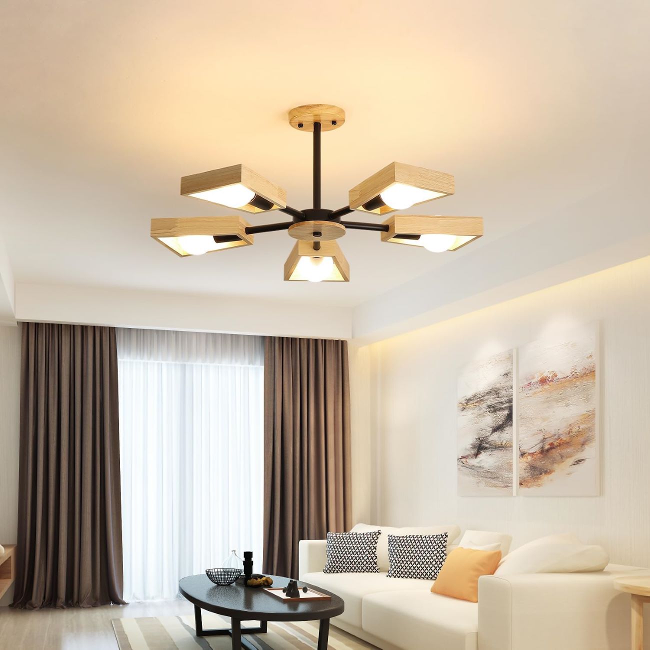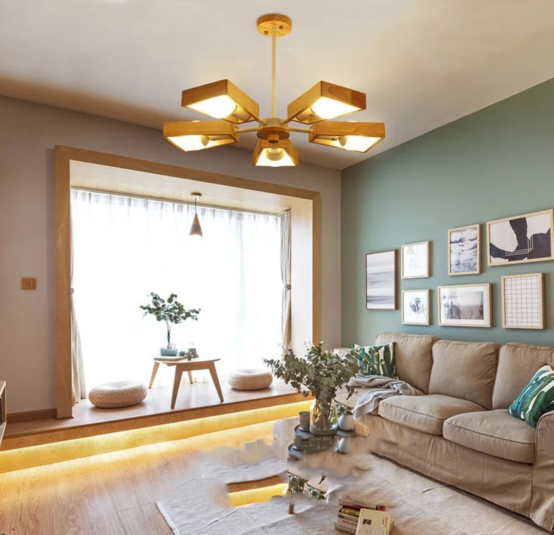 Skandynawska Lampa Wisząca Nolan Żyrandol Drewniany