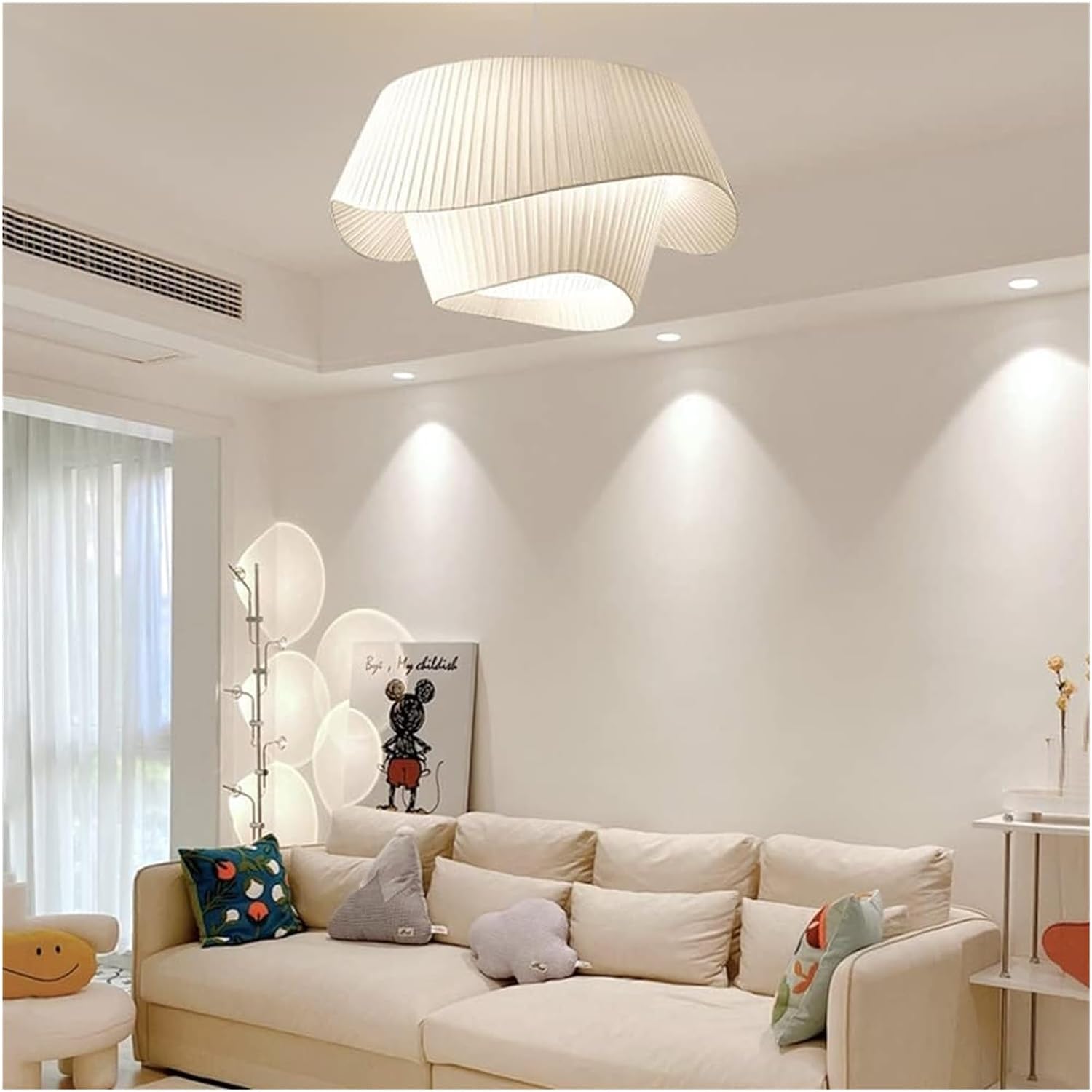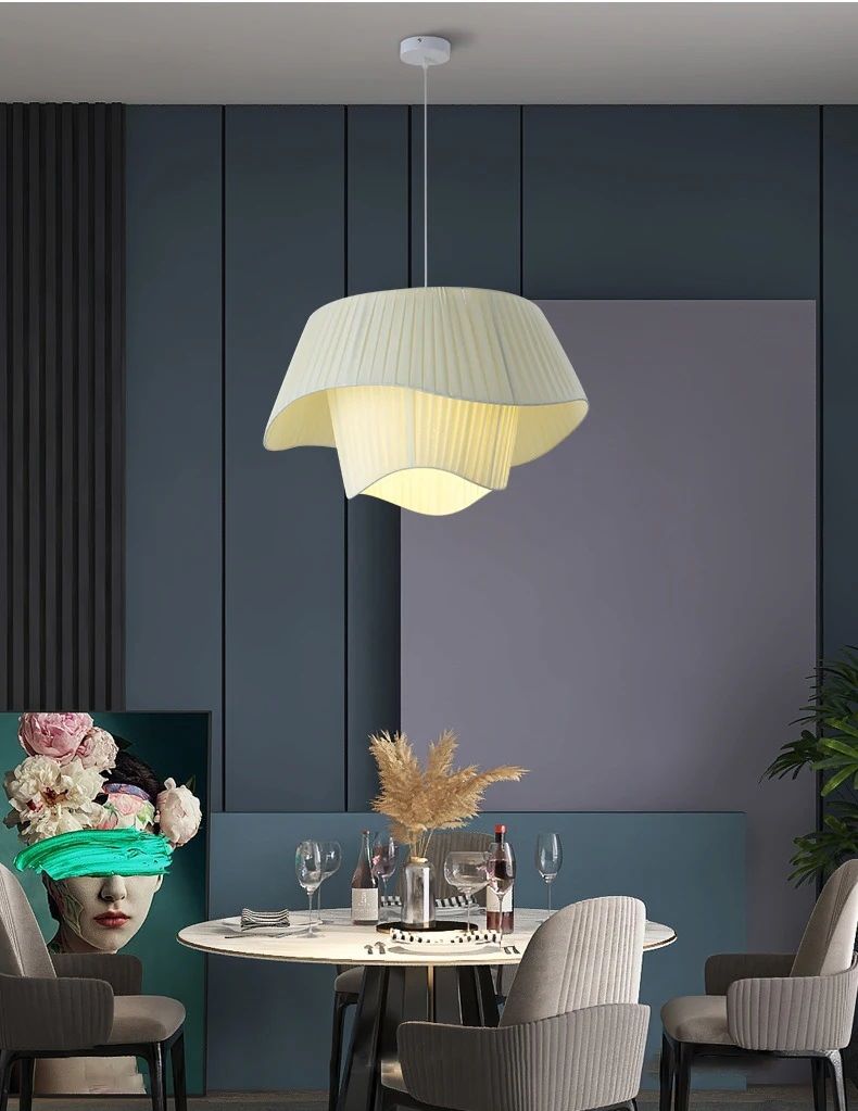 Klasyczna Skandynawska Materiałowa Lampa Wisząca Coco Luce w Kolorze Kremowym i Białym