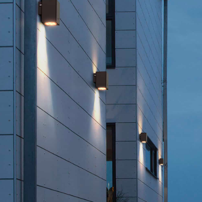 Kinkiet ścienny zewnętrzny LED brązowy kostka
