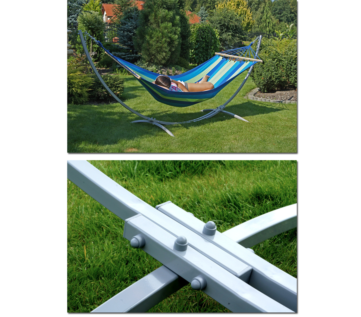 Bardzo wytrzymały stojak przeznaczony do zawieszania hamaków, wyprodukowany z najwyższej jakości stali. Dzięki niemu będziesz mógł się rozkoszować wypoczynkiem w dowolnym miejscu swojego ogrodu lub tarasu. Co więcej, nadaje się zarówno do użytku w ogrodzie, jak i w domu. Jest łatwy w montażu i zajmuje mało miejsca. Po sezonie szybko i łatwo można go złożyć i przechować do następnego sezonu. Idealny do relaksu i wypoczynku.