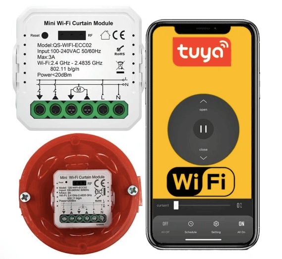 Sterownik do rolet WiFi do mocy aż 720 W z funkcją regulacji procentowej otwarcia rolety, pozwoli kontrolować zasłanianie będąc podłączonym do sieci Wifi lub zdalnie z każdego miejsca na ziemi. Dodatkowo umożliwia ustawienie harmonogramu, dzięki któremu zasłoni lub odsłoni roletę w ustawionym czasie.