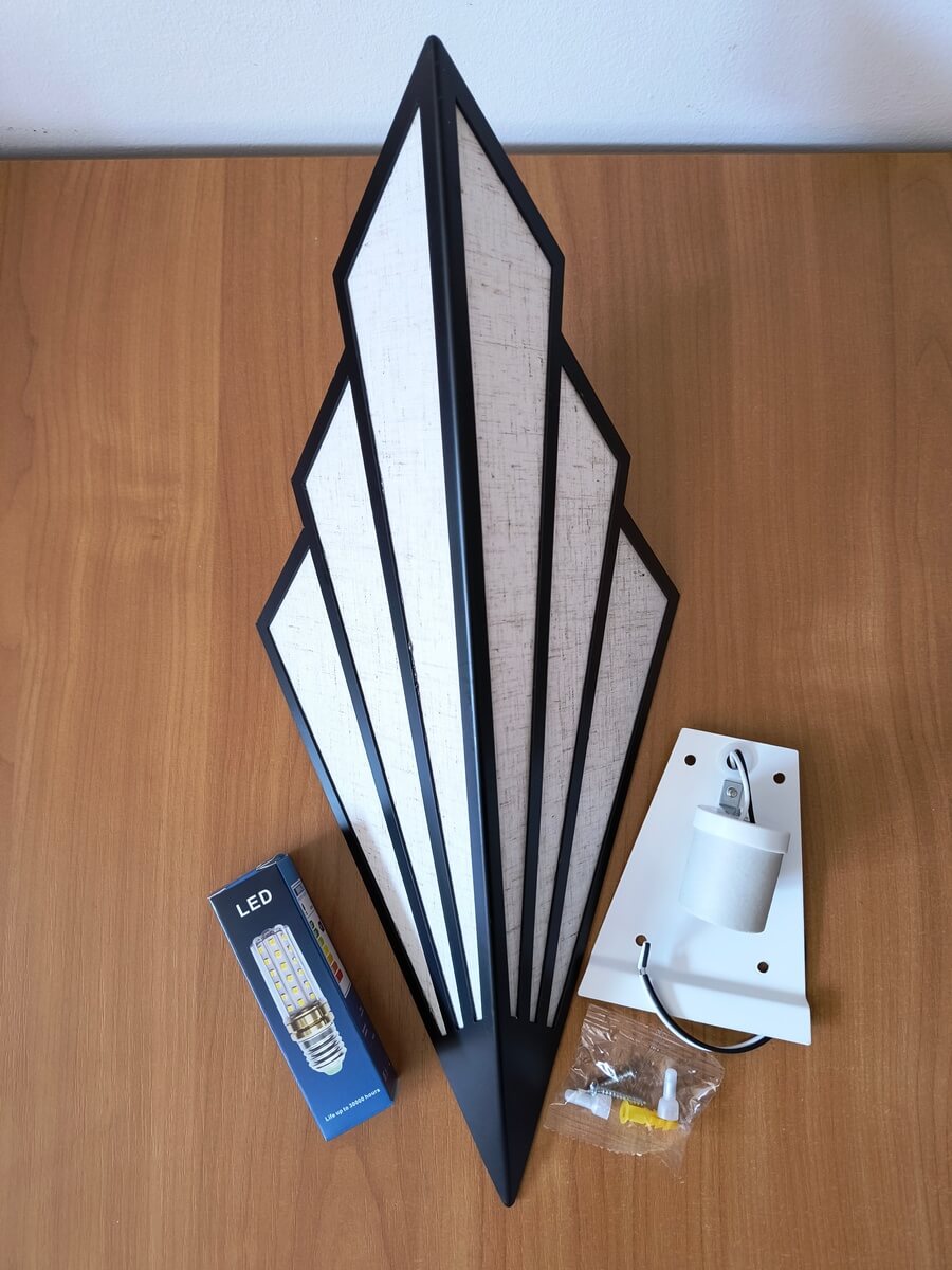 Trójkątna japońska lampa ścienna w stylu art deco. Stylowy i orientalny kinkiet idealny do salonu, sypialni, korytarza.