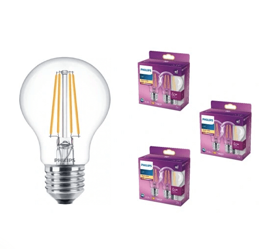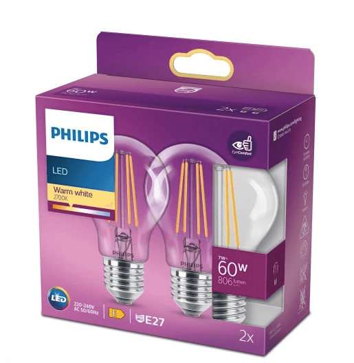 6x Żarówka E27 PHILIPS LED 7W = 60W FILAMENT barwa ciepła 2700K EyeComfort