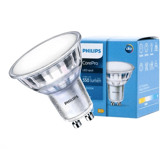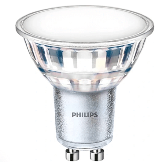 Żarówka GU10 LED renomowanej i uznanej w branży oświetleniowej firmy PHILIPS, kącie padania światła 120° i mocy wynoszącej 5W (odpowiednik klasycznego halogenu o mocy 50W), to wysokiej jakości źródło światła o ciepłej barwie 3000K i strumieniu świetlnym 550 lm.