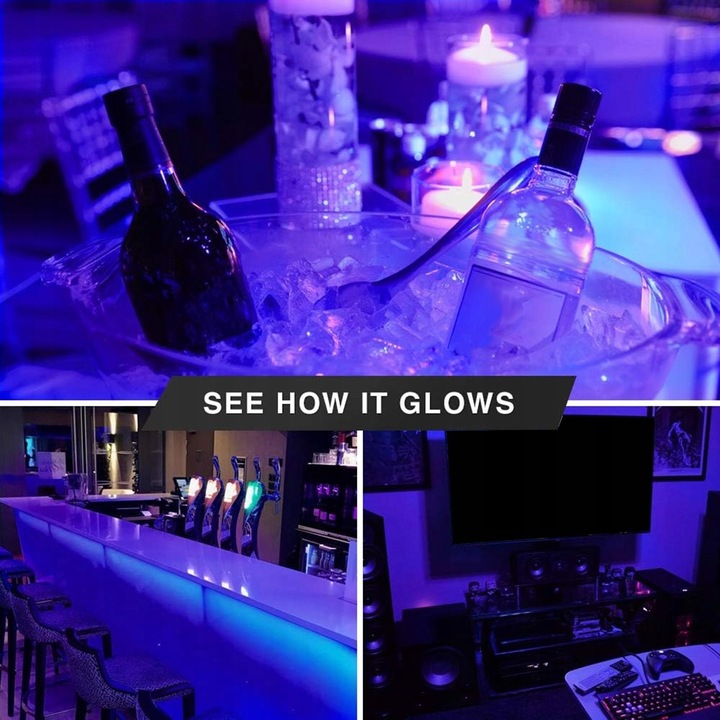 Żarówka nadaje się do oświetlania większości reaktywnych pigmentów, doskonale współpracuje z przedmiotami w kolorze neonowym, widocznymi materiałami fluorescencyjnymi itp. Żarówki doskonale nadają się do ozdabiania świąt Bożego Narodzenia, Halloween, zaopatrzenia firm, karnawałów, klubów, akwarium, zespołów, ozdabiania ciała itp. Żarówka posiada szeroki kąt świecenia 360 stopni i jest doskonałym oświetleniem nastrojowym.