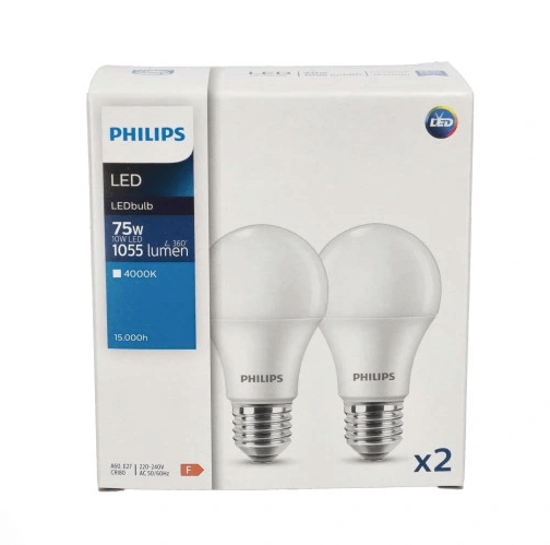 PHILIPS ZESTAW 2x Żarówka LED E27 10W =75W 4000K NEUTRALNA BIAŁA 1055lm A60