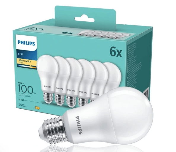 Żarówka LED E27x6 13W=100W 2700K Philips